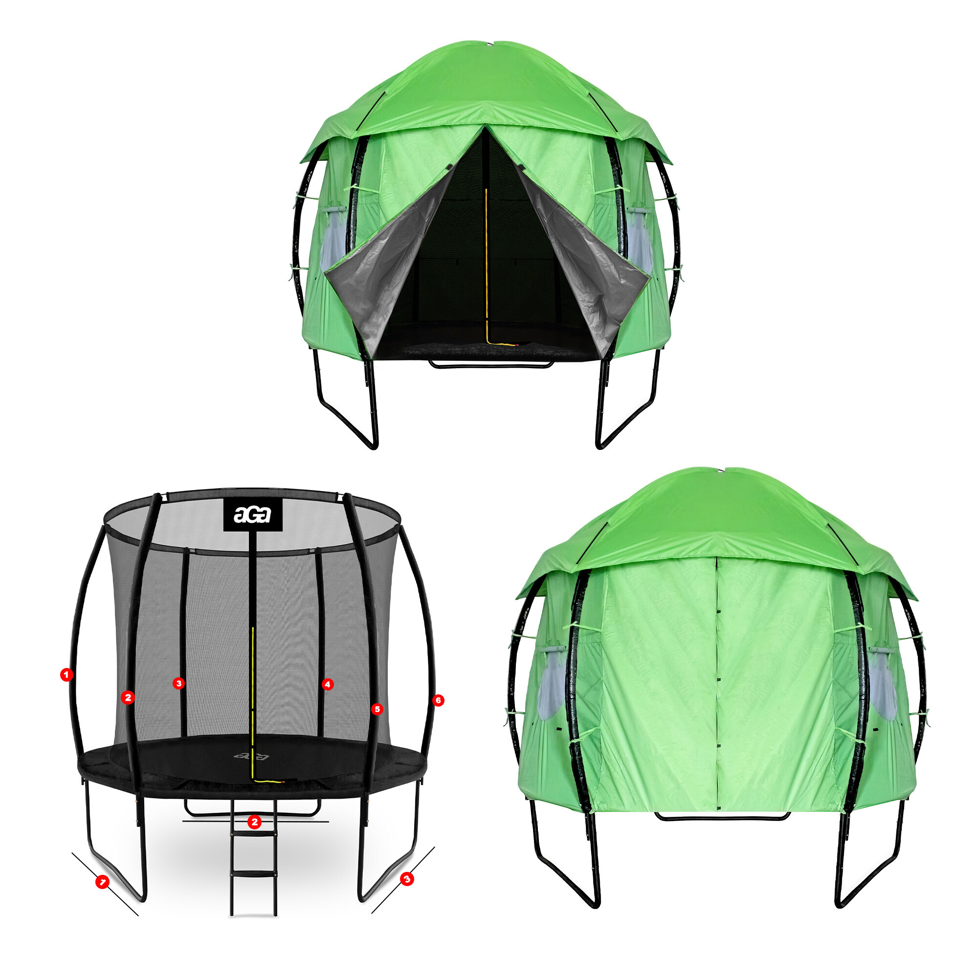 Specifikacije šotora Aga za trampolin EXCLUSIVE velikosti 250 cm (8 ft).