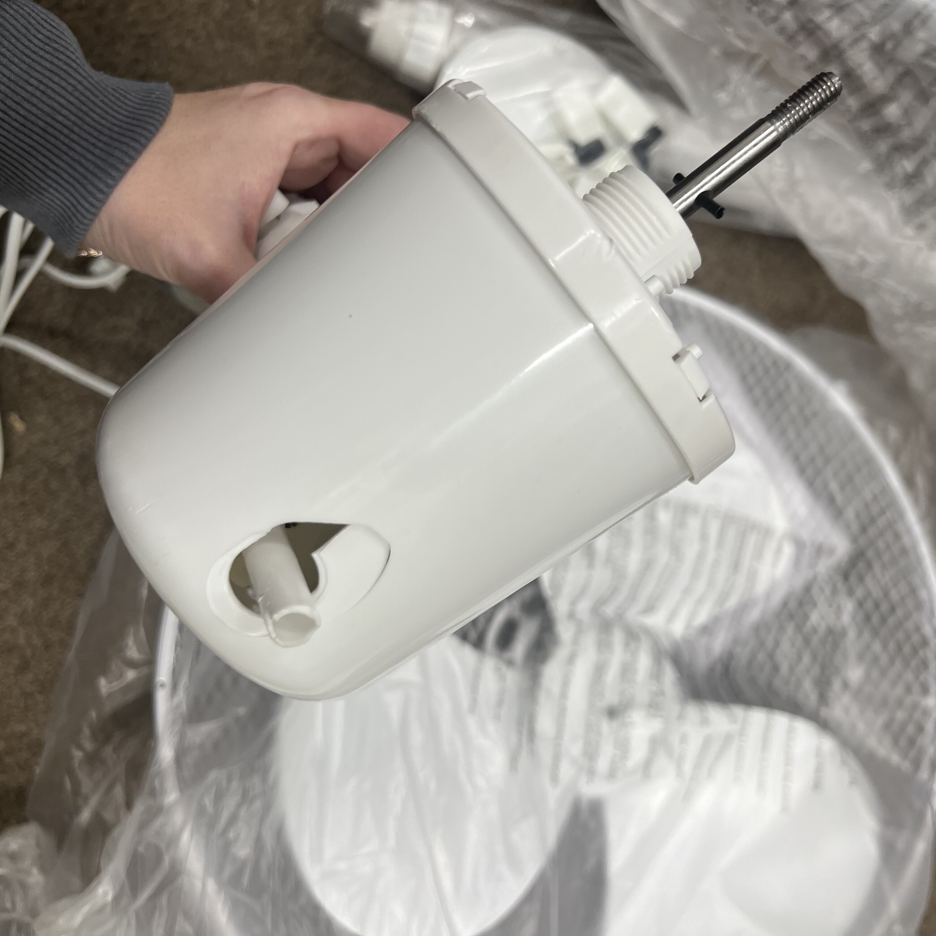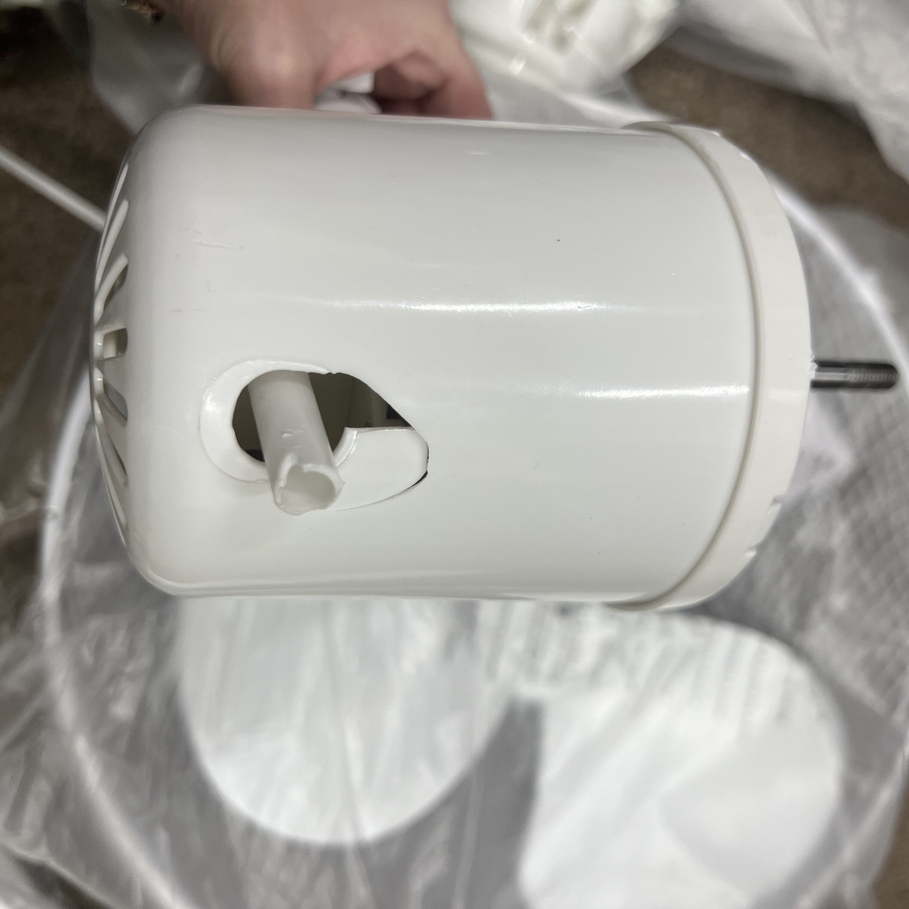 Ventilator kaže poškodbe, vendar je funkcionalen. V bližini stikala za hitrost je razpoka.