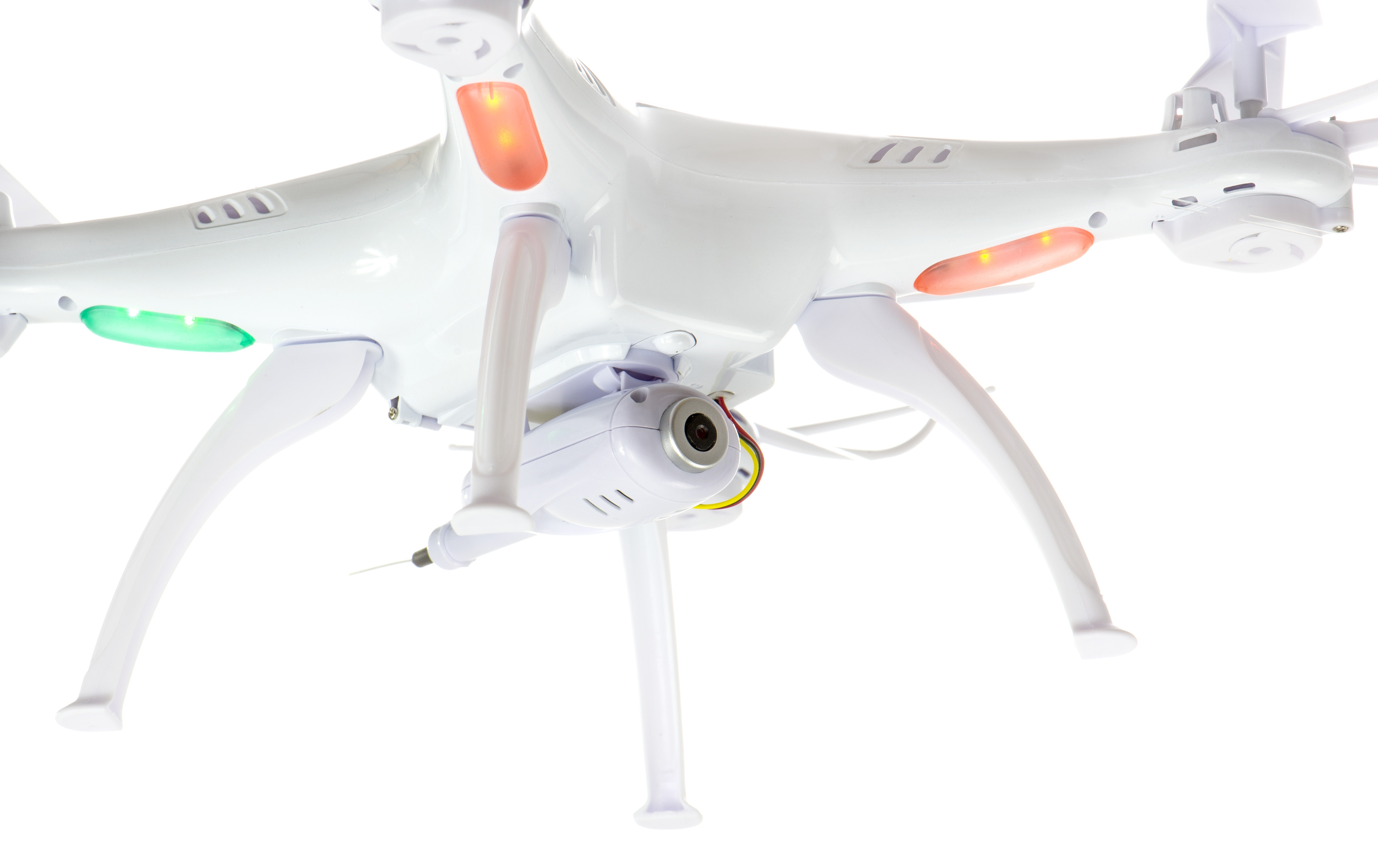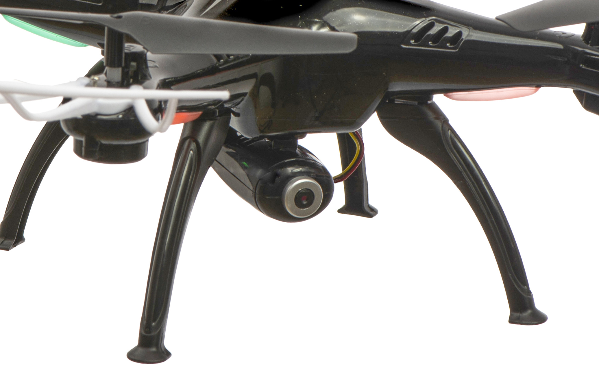 4-kanalna letalska steza. Brezglavi način. Ima nameščeno kamero s prenosom videa v realnem času. Frekvenca 2,4 GHz. Domet do 50 m. Čas leta >7min. Napajanje: 3,7 Li-po 500mAh polnilna baterija, 4 baterije AA. Dimenzije: 31,5x31,5x8 cm.Celoten opis