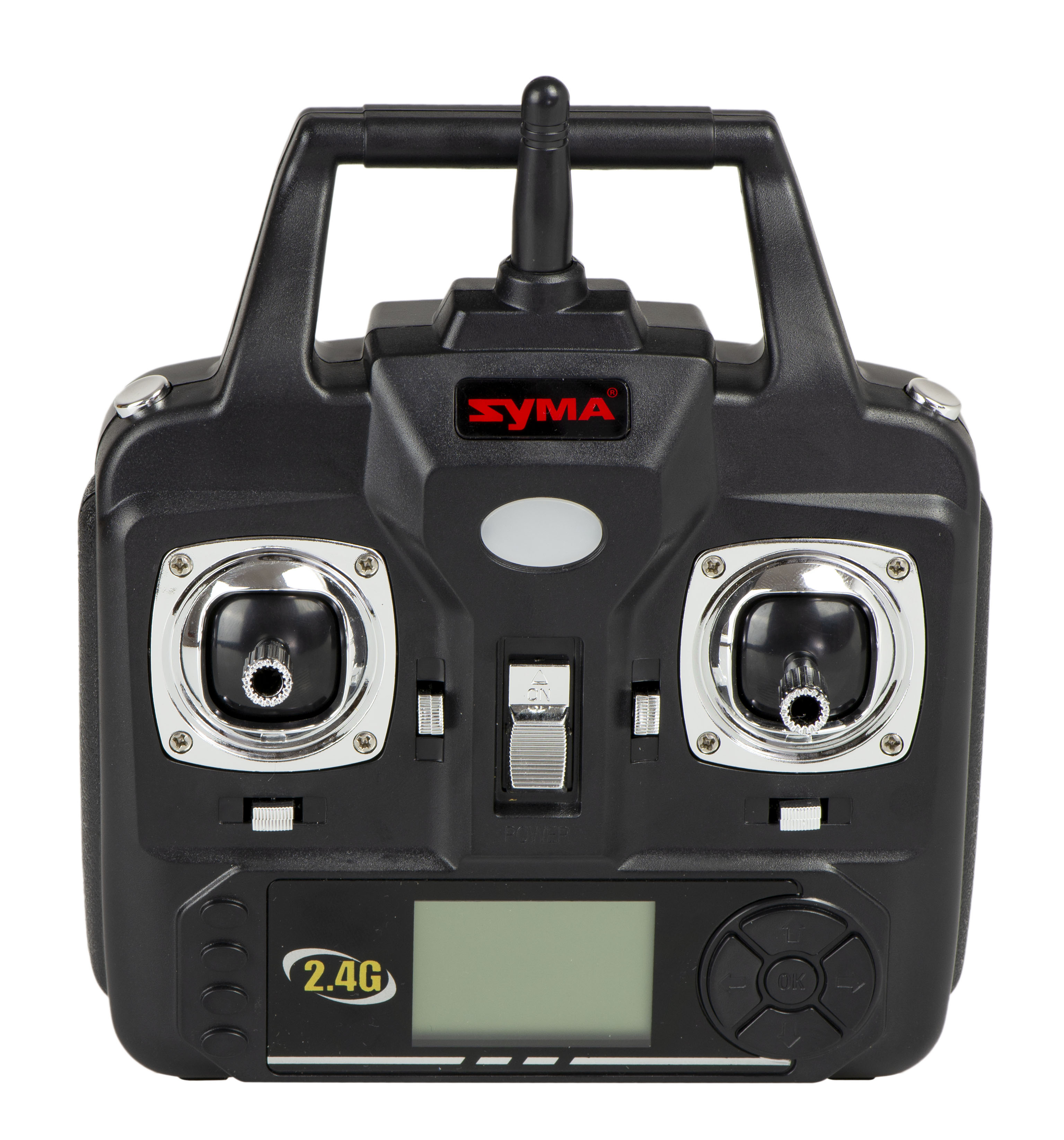 Daljinski upravljalnik z LCD zaslonom oddaja signale na frekvenci 2,4 GHz za boljši nadzor leta in manjšo občutljivost na motnje.