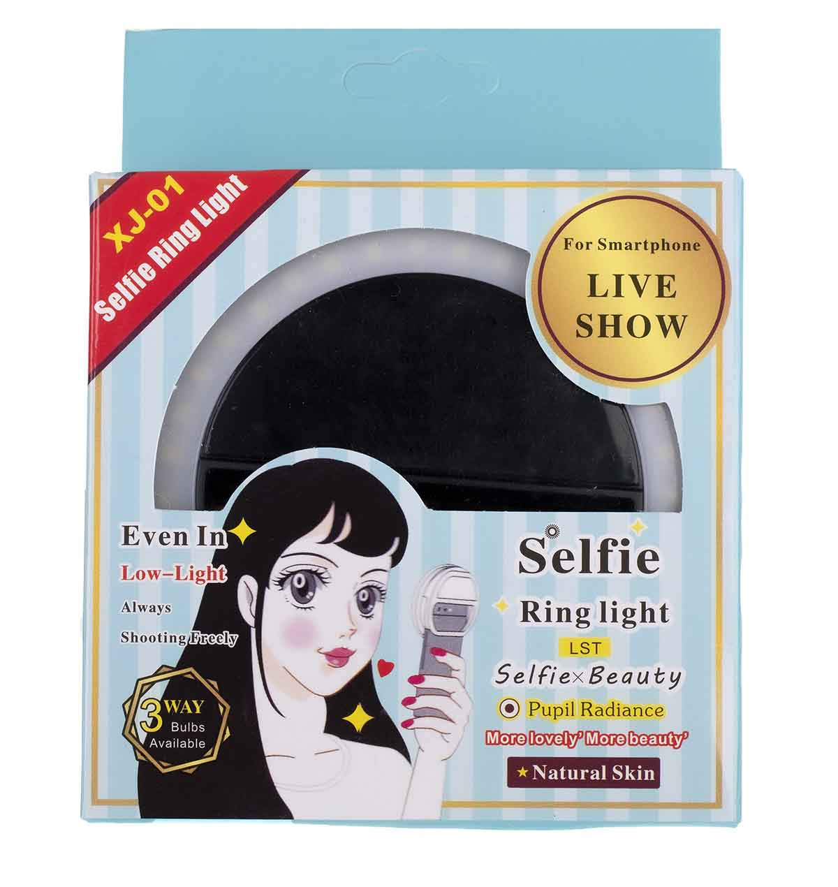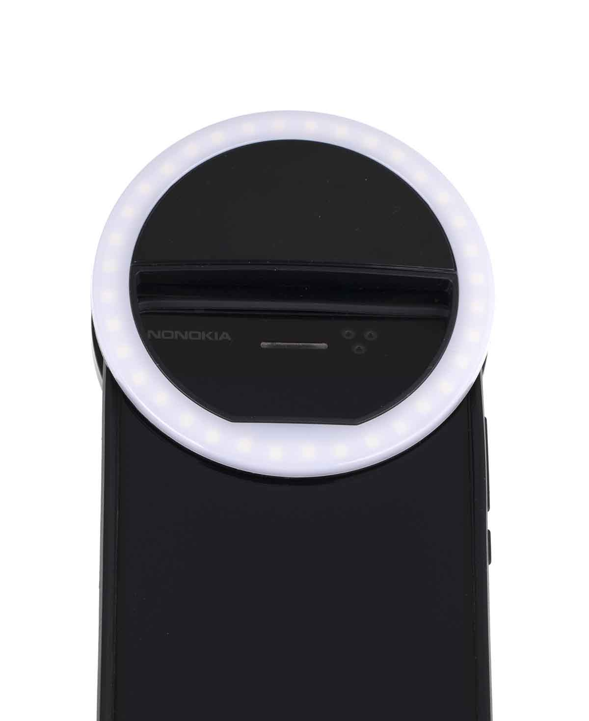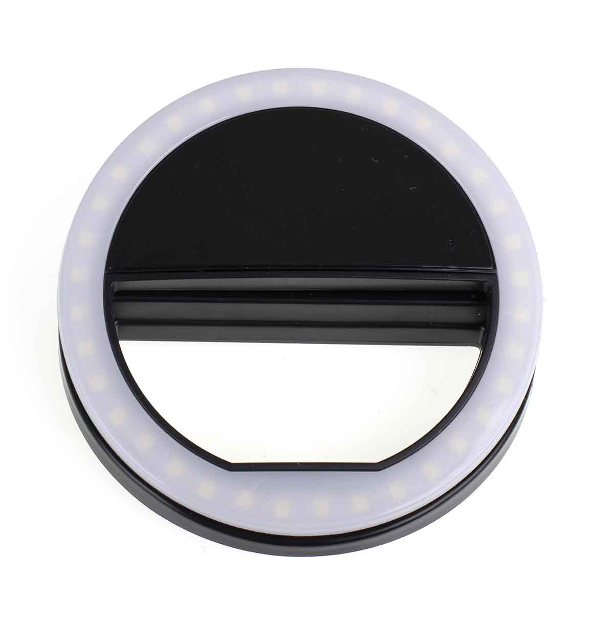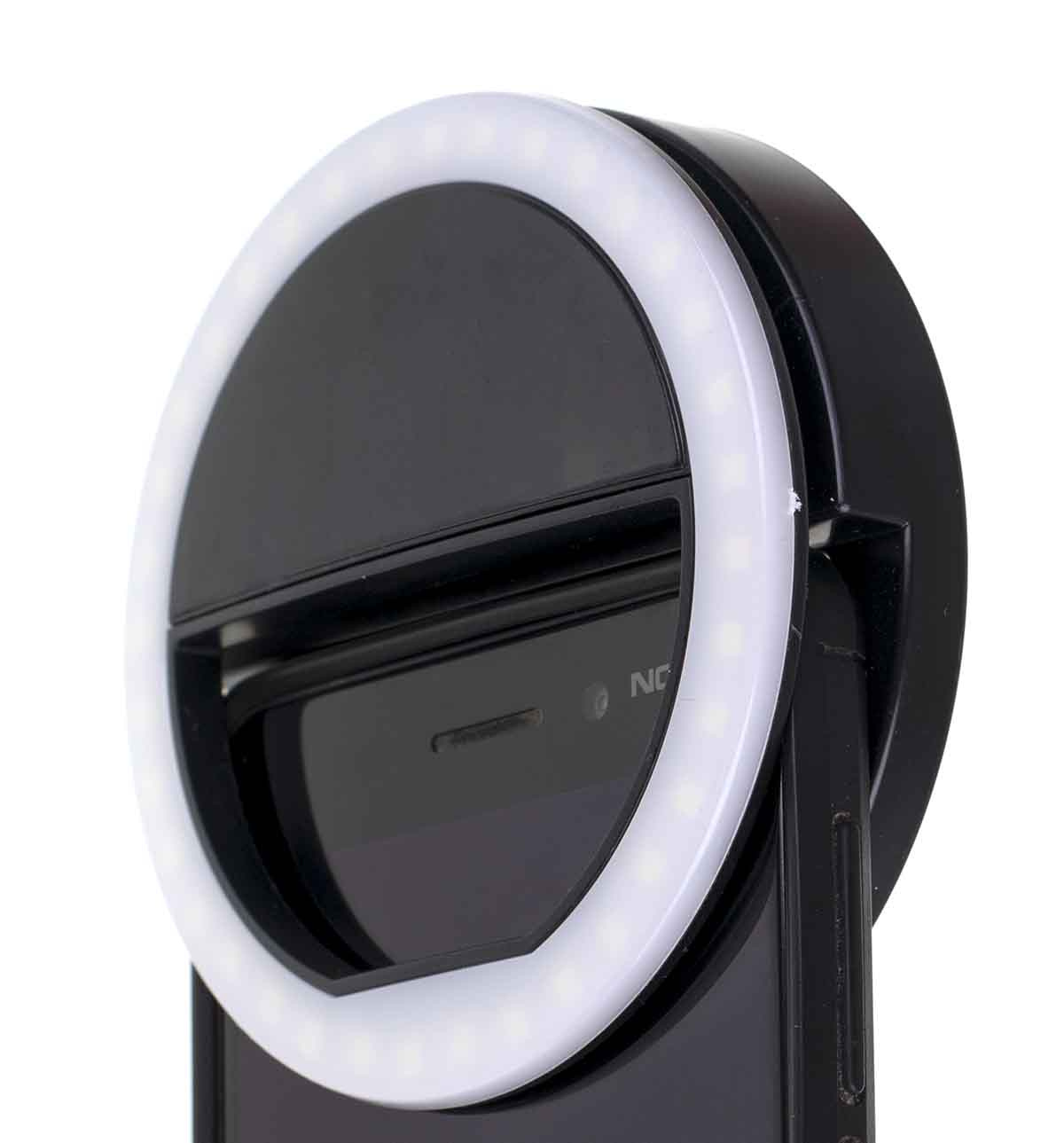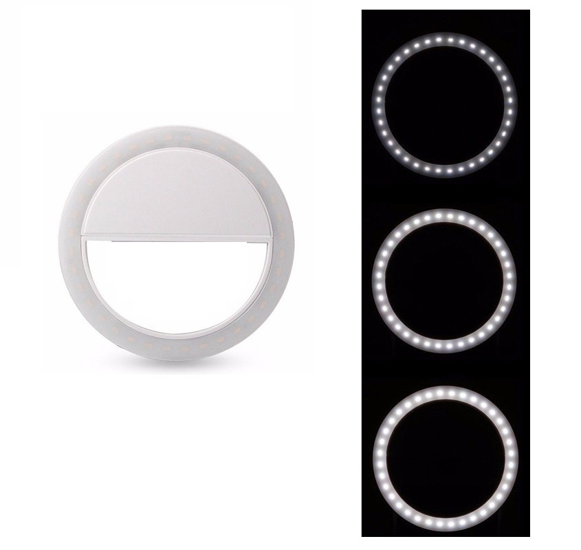 Selfie svetilka s sponko.Dobro služi pri fotografiranju ali snemanju s pametnim telefonom.Sodoben dizajn svetilke v obliki obroča omogoča enakomerno osvetlitev obraza ali drugega predmeta.jo enostavno pritrditi na katerikoli telefon.Prav tako služi kot prenosna in lahka svetilka, ki jo je mogoče namestiti na številna mesta.Ima 36 LED diod za izboljšanje osvetlitve fotografije.Možno nastaviti na tri ravni svetlosti.