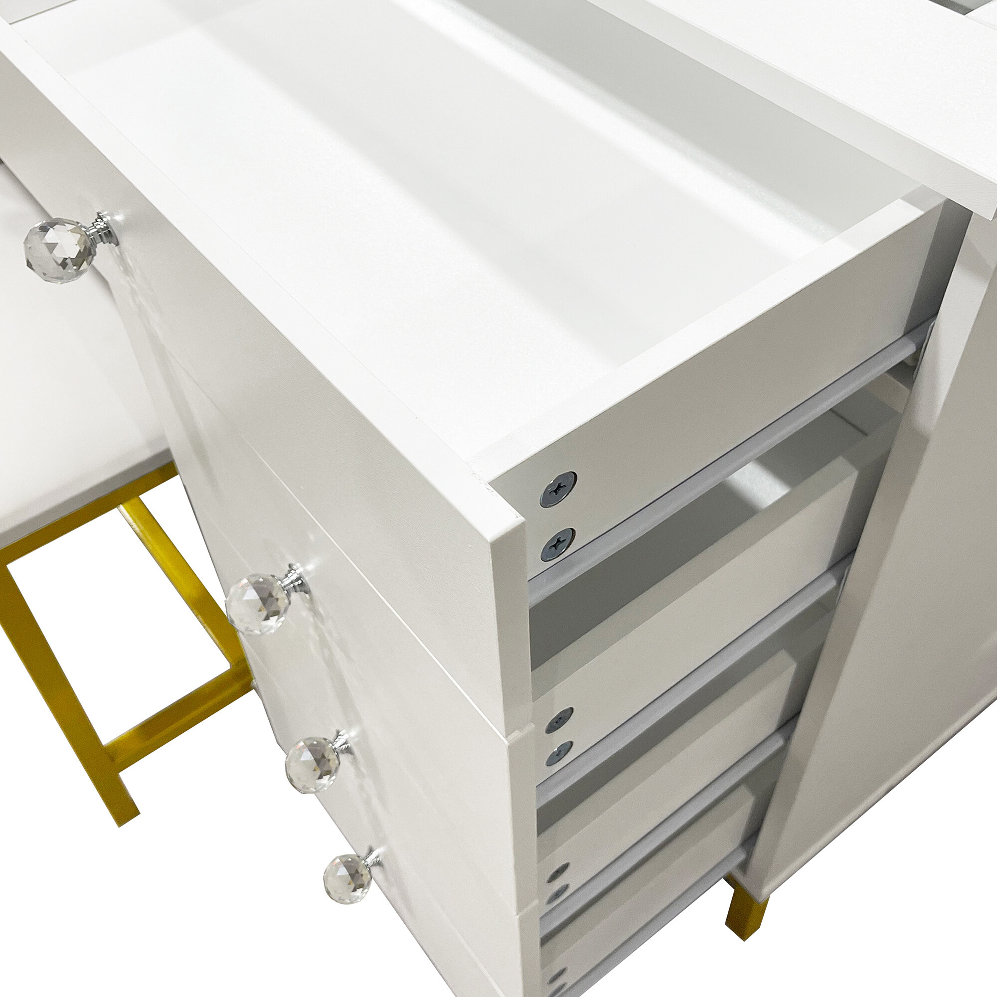 Dimenzije mize 115 × 40,6 × 140 cm zagotavljajo, da se popolnoma prilega tudi v manjše spalnice ali stanovanja. Bela mat površina deluje elegantno in brezčasno, zaradi česar lahko mizo enostavno uskladite s katerim koli interierjem – od modernega do klasičnega.