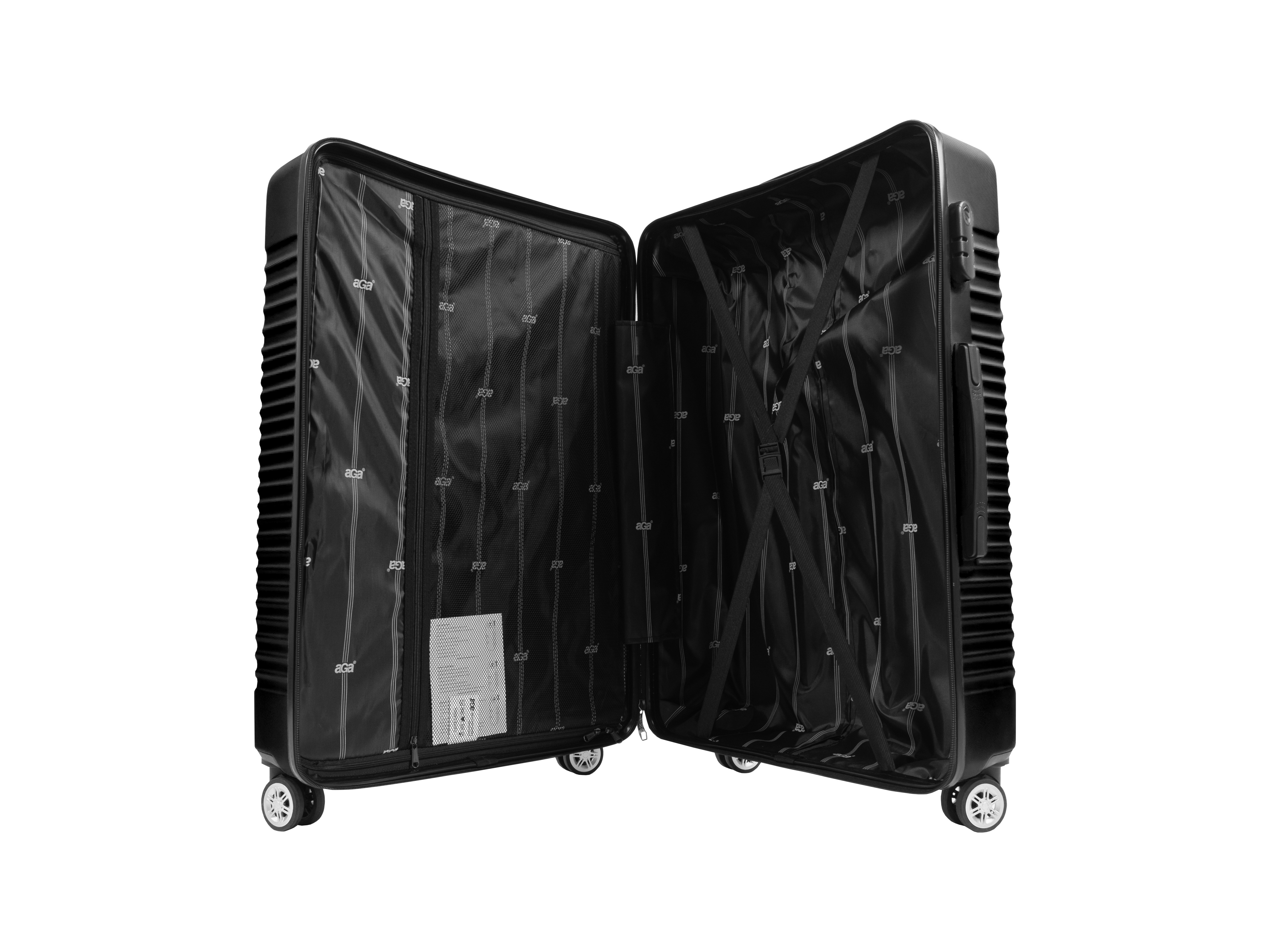 Kovčki so izdelani iz trdne konstrukcije iz odpornega ABS materiala. Zahvaljujoč temu so prtljage bolj trpežne, lažje in odporne proti udarcem, kar vam zagotavlja, da se vaše stvari ne morejo poškodovati.