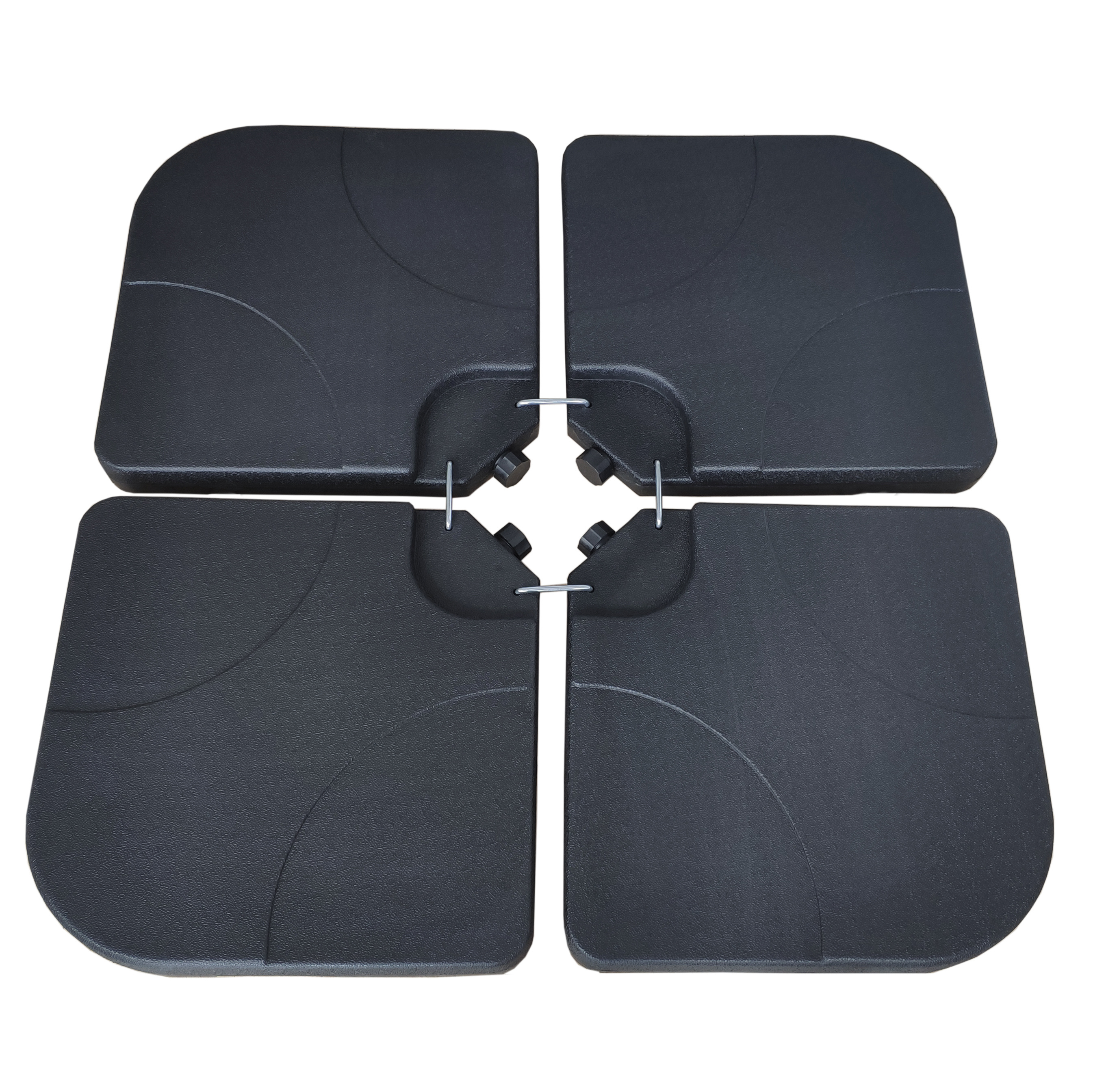 Aga utež za senčnik. Ta praktičen in zanesljiv set štirih uteži je zasnovan tako, da zagotavlja maksimalno stabilnost vašemu senčniku, ne glede na to, ali ga uporabljate na vrtu, terasi ali ob bazenu.
