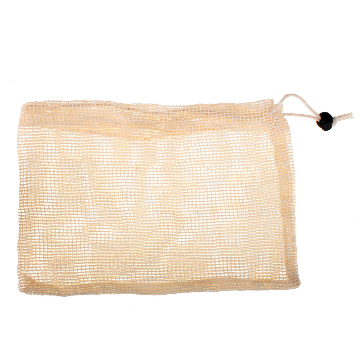 Bombažne vrečke za sadje in zelenjavo so prvi korak k življenju brez odpadkov. Vsak od nas letno porabi 290 do 450 kosov plastičnih vrečk, s čimer prispevamo k onesnaževanju okolja. V morjih in oceanih konča do 10 milijonov ton plastike letno. Omejite proizvodnjo in porabo plastičnih vrečk! Na nakupe vzemite s seboj lahke bombažne vrečke, ki bodo uspešno nadomestile t. i. "žaklovina". spodrs. Gosta mrežica, iz katere so vrečke narejene, omogoča pakiranje tudi majhnih izdelkov, kot so oreščki ali fižol. Hkrati lahko blagajnik enostavno preveri njihovo vsebino. Večkrat uporabne vrečke iz naravne nebarvane bombažne mreže in zapiranje z vrvico. Vrečke so zelo lahke, zato imajo zanemarljiv vpliv na težo izdelkov.