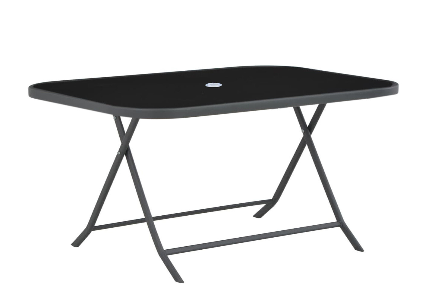 Zložljiva vrtna miza s trdnim kovinskim okvirjem in stekleno ploščo, idealna za vrtove, terase, paviljone, balkone, pa tudi za notranjost restavracij in kavarn.