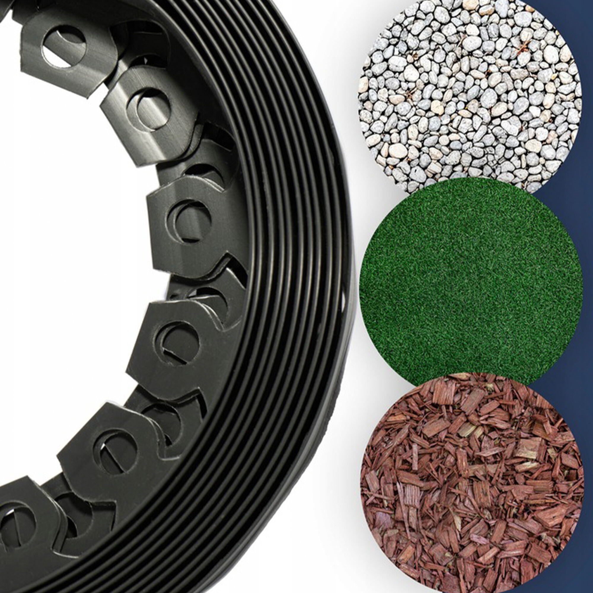 - Robnik je mogoče enostavno upogniti v loke, valove ali kroge, tako da se prilagodi kateri koli obliki gredice ali trate