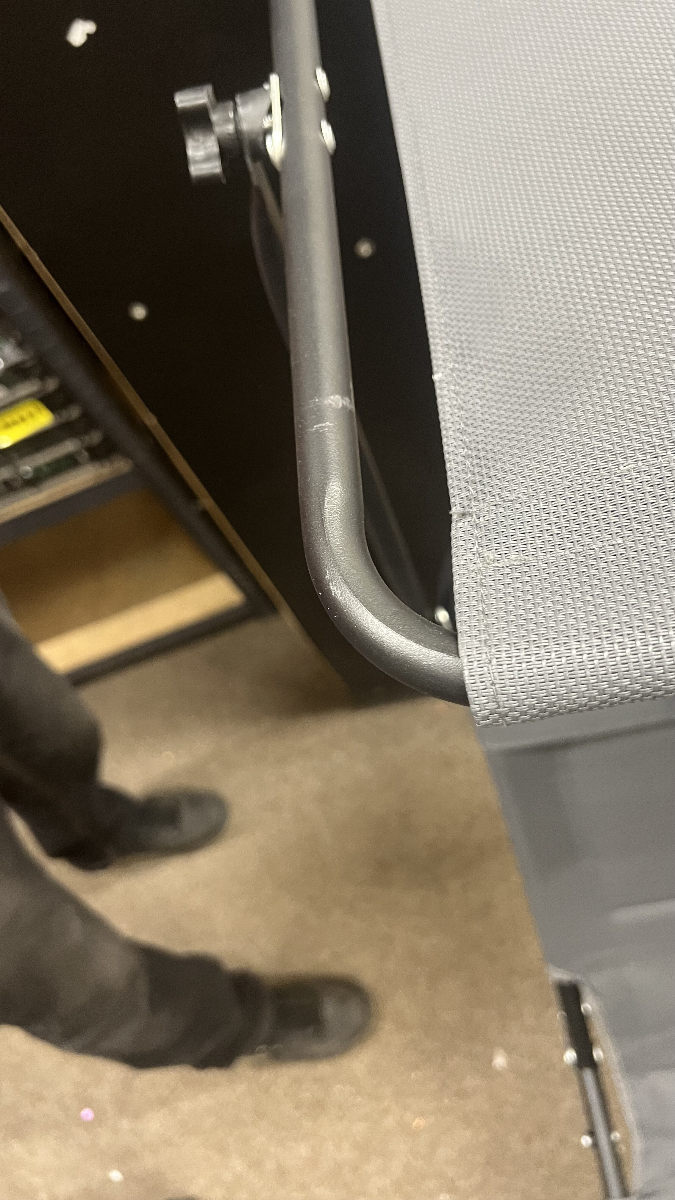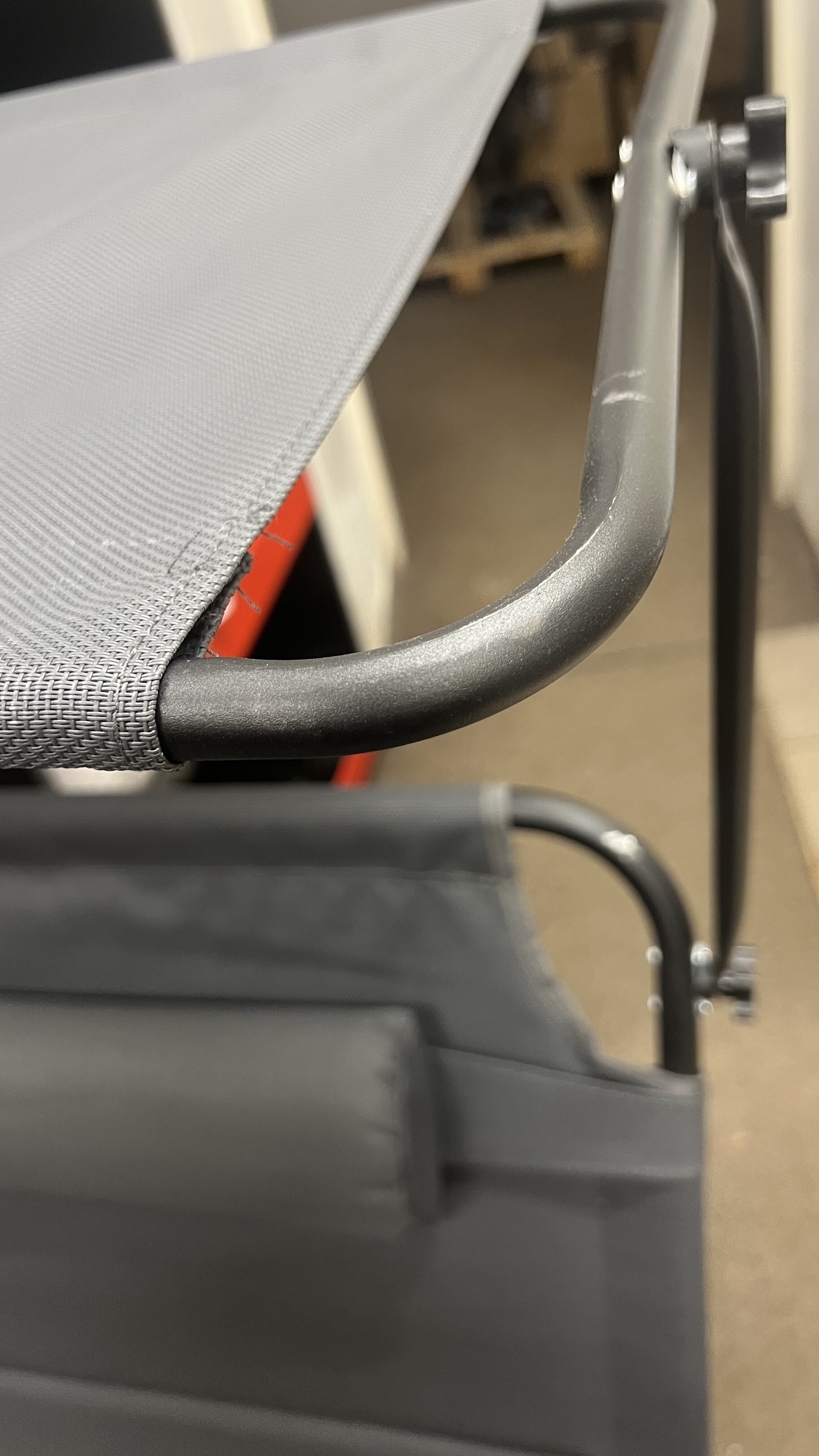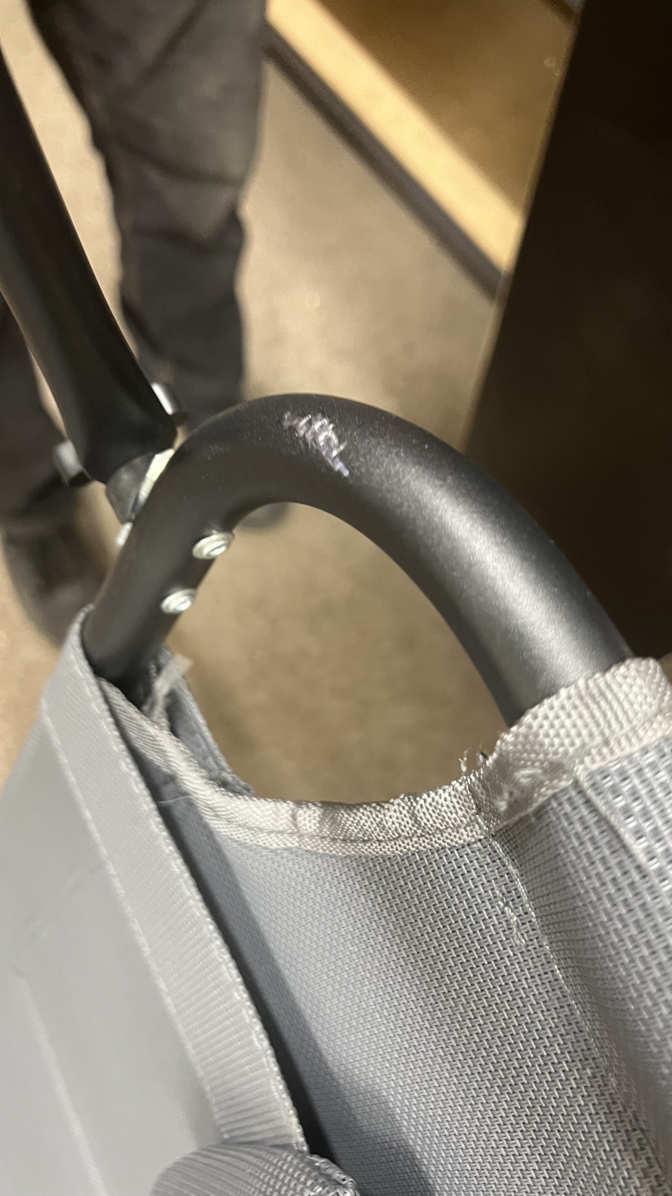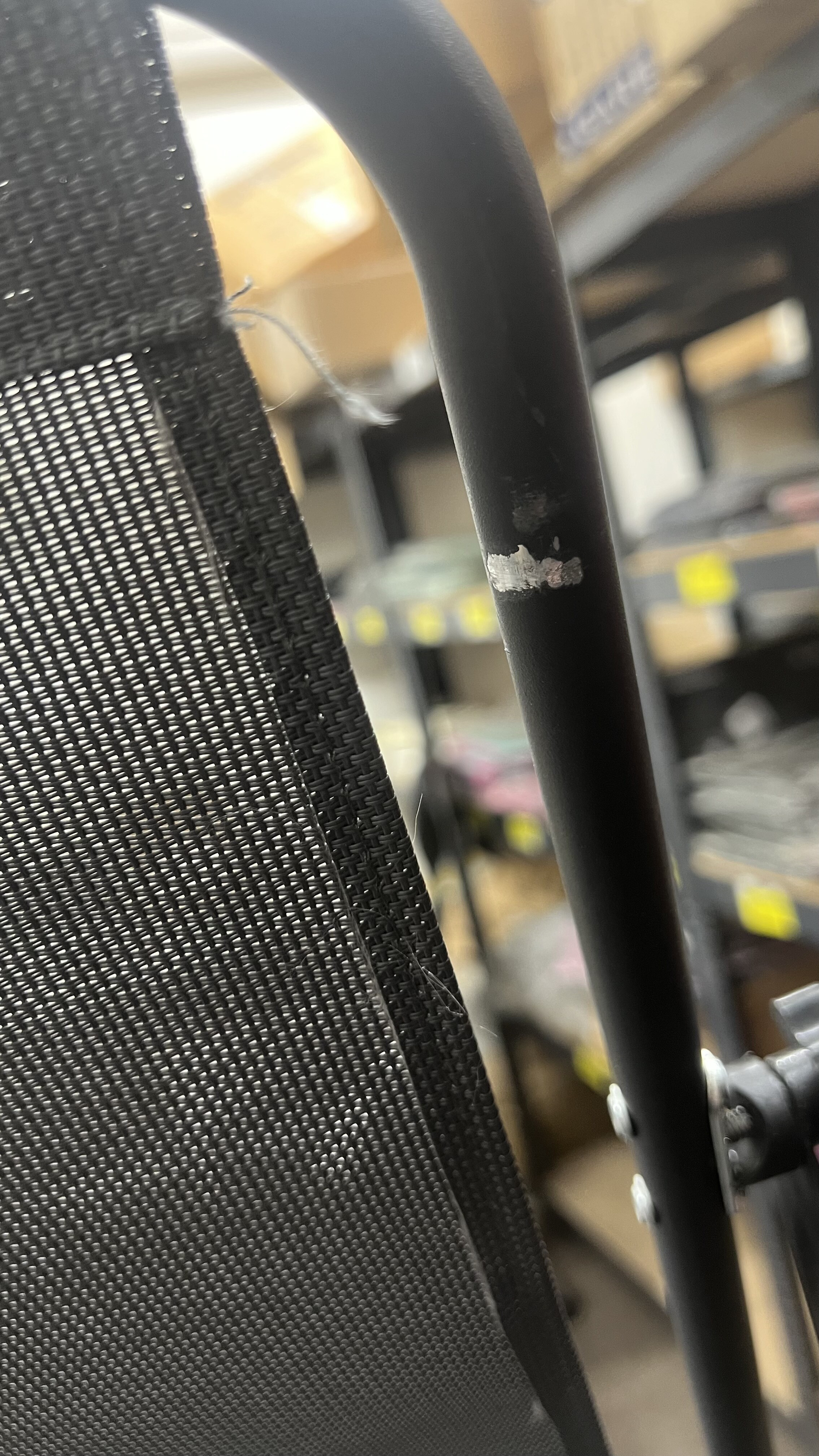 To je izdelek 2. kakovosti, ker ima rahlo poškodovan material, opraskano konstrukcijo in strešica na levi strani se ne privija – glej fotografije.