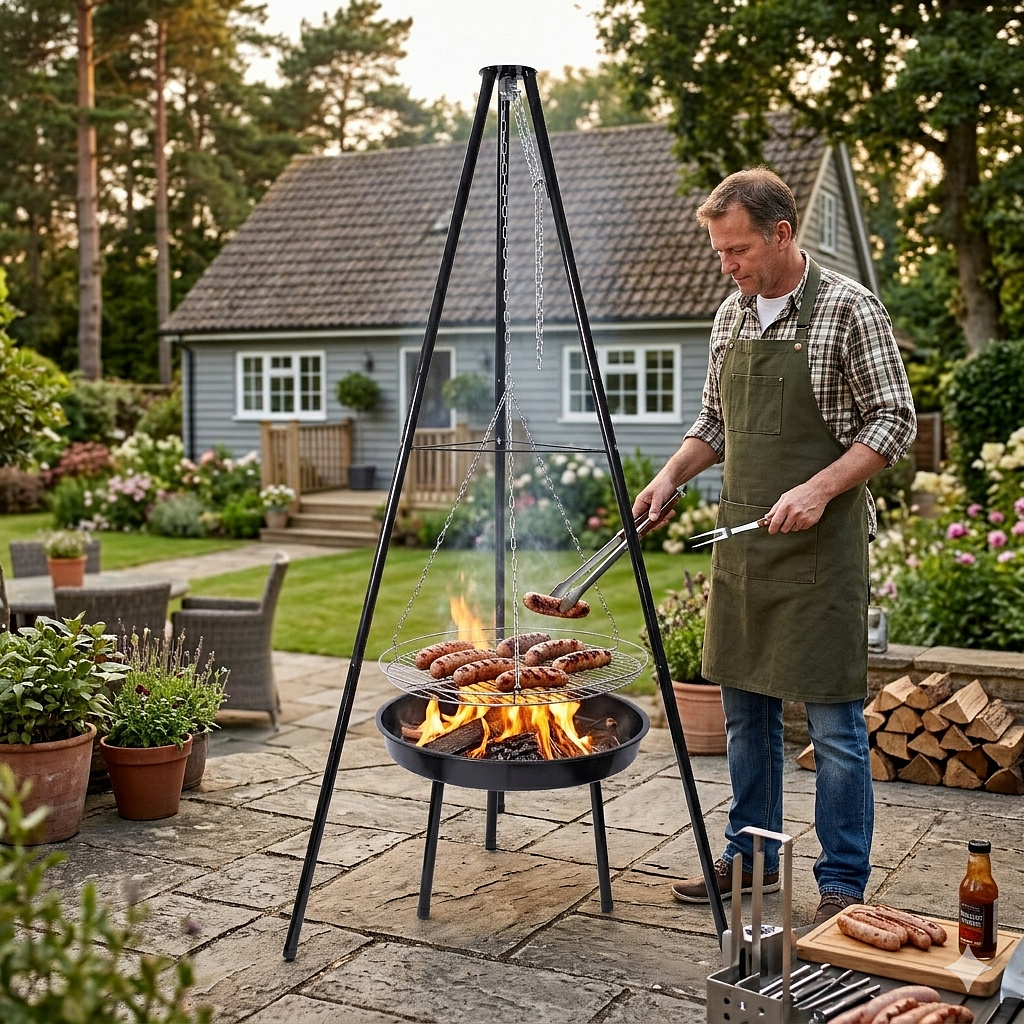 Aga trinožnik za žar na odprtem ognju omogoča pečenje na katerikoli površini, tudi na neravni.