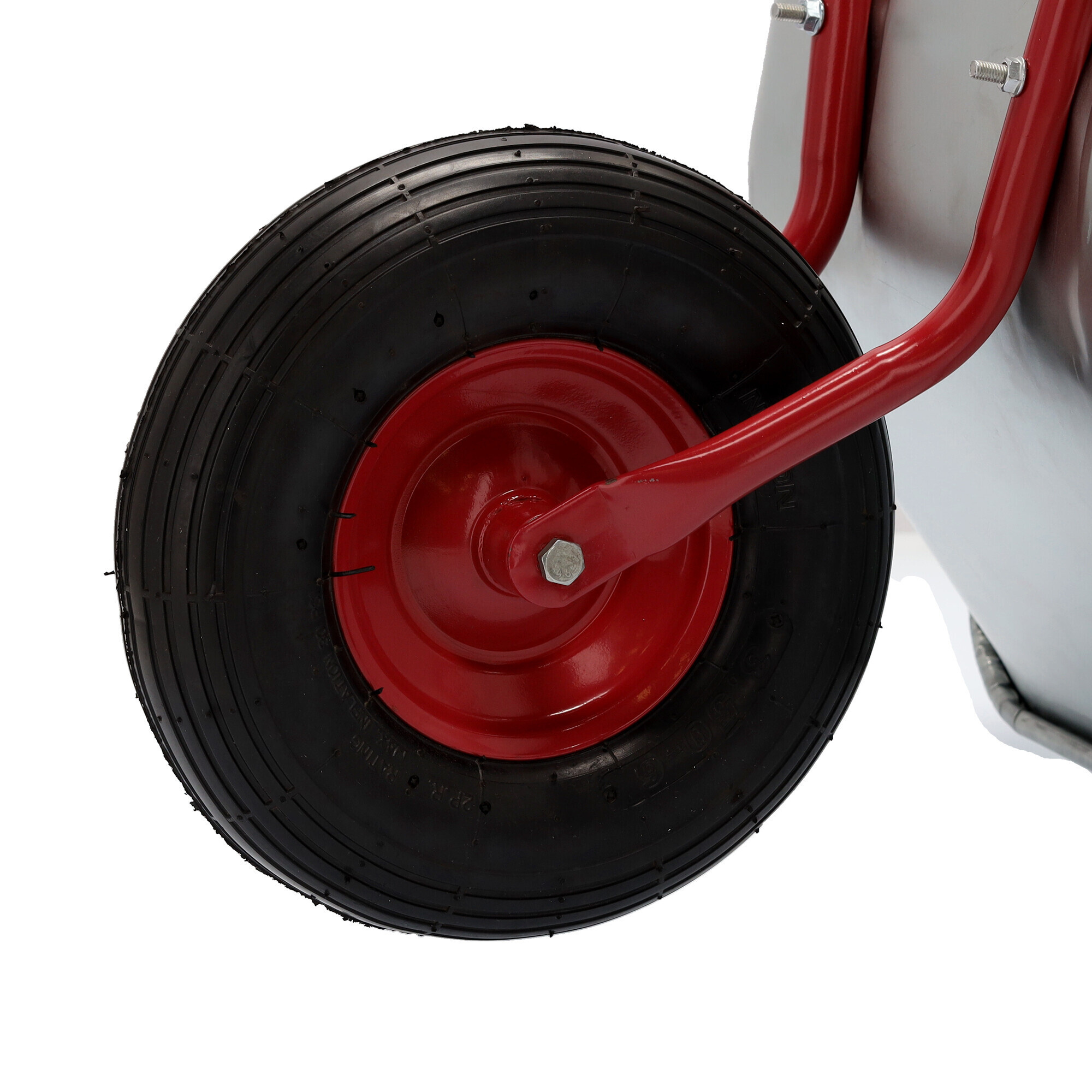 Samokolnica ima trdno prostorno korito s prostornino 85 litrov in nosilnostjo do 100 kg.