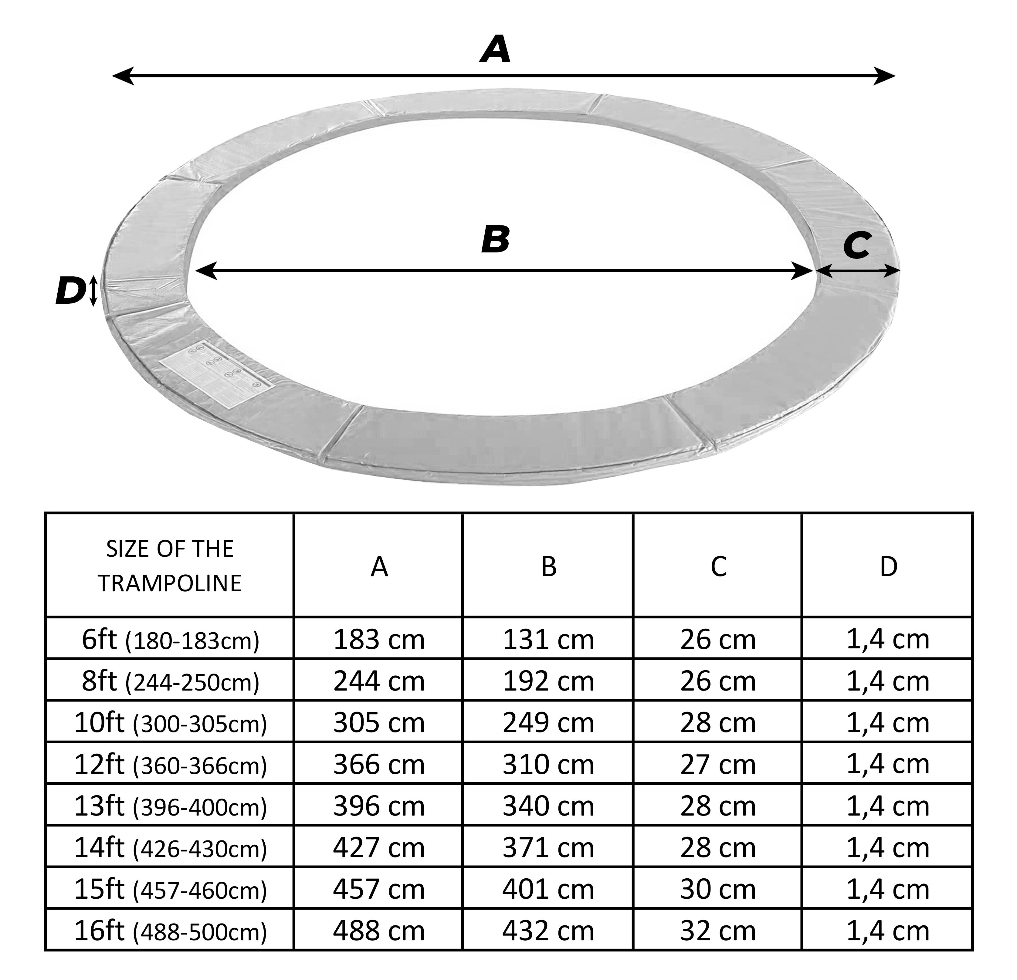 Izdelan je iz kakovostnega PVC-ja in prekriva vzmeti po celotnem obodu trampolina.