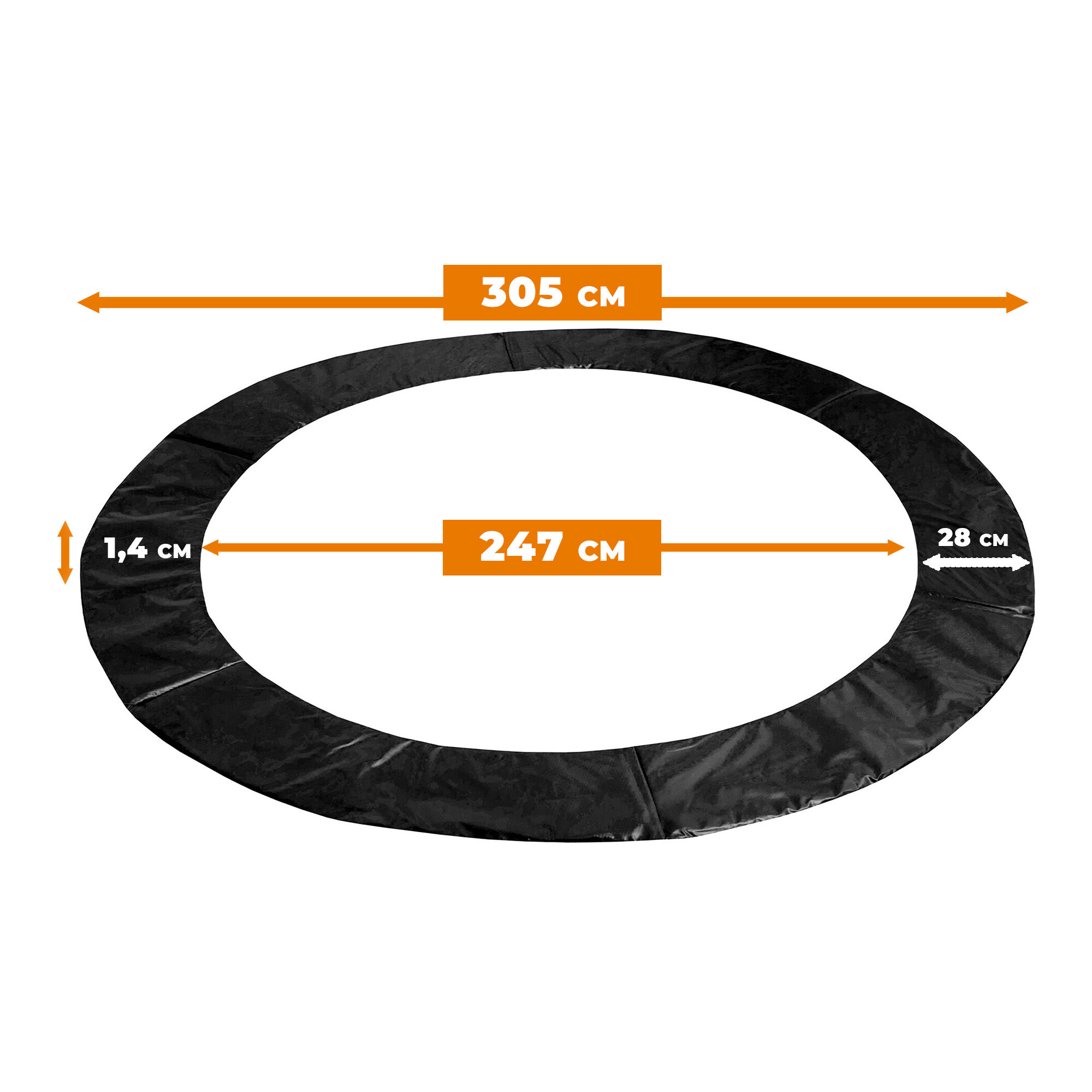 Zaščitni pokrov vzmeti (oblazinjen obodni trak) je nujen varnostni element vsakega trampolina. Zagotavlja maksimalno zaščito pri skakanju in zmanjšuje tveganje za poškodbe ob stiku z vzmetmi. Ta model je namenjen trampolinam z notranjo mrežo, zato se popolnoma prilega konstrukcijam, kjer je zaščitna mreža nameščena znotraj skakalne površine.