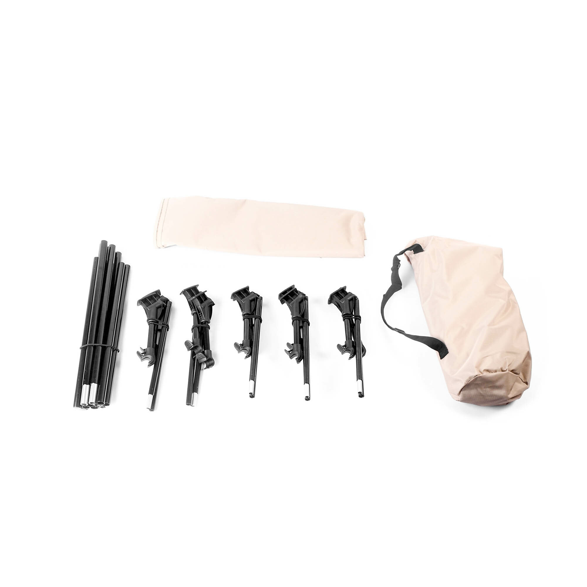 Prevleka za ležalnik je izdelana iz kakovostnega poliestra in oxforda, kar zagotavlja udobje in odpornost proti obrabi. Ta material je enostaven za vzdrževanje in odporen proti vlagi, kar je idealno za uporabo v naravi.