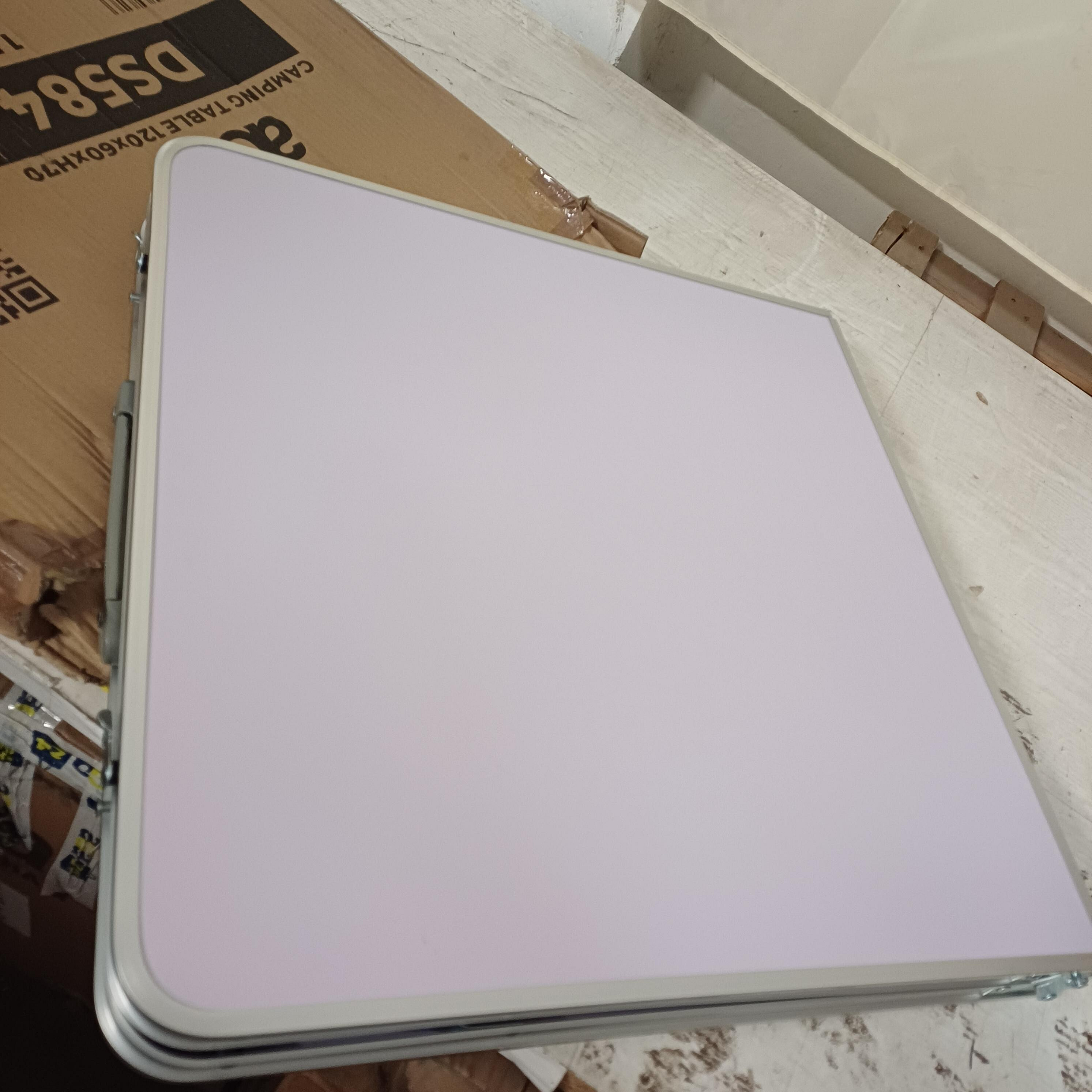 - V zloženem stanju je miza enostavno prenosljiva v obliki plošče z ročajem