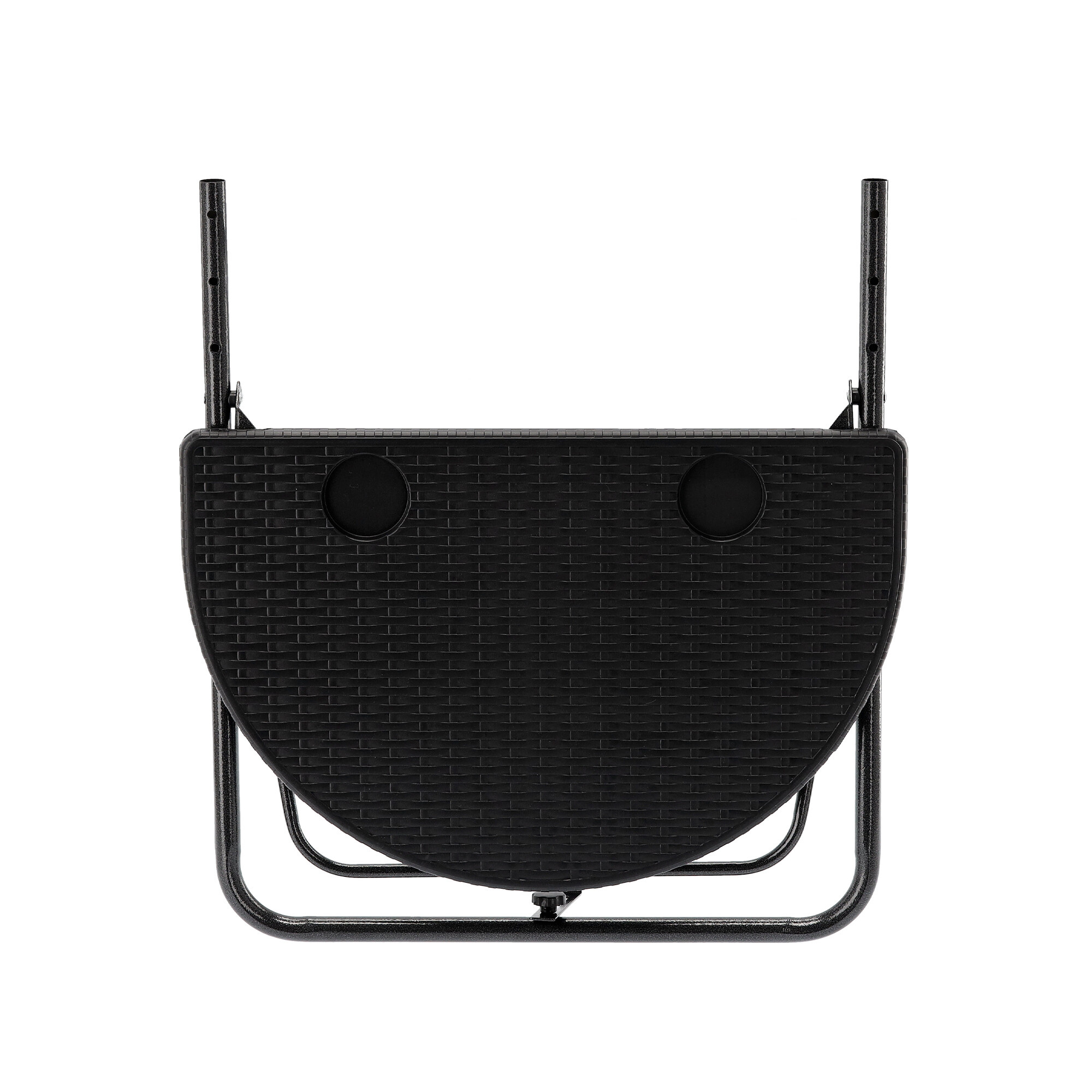 Sama površina mize, nastavljiva po višini 73/78,5 ali 83,5 cm, je opremljena z dvema držaloma za pijačo.Prednost te mize je njena izjemna zložljivost in enostavna sestavljivost.