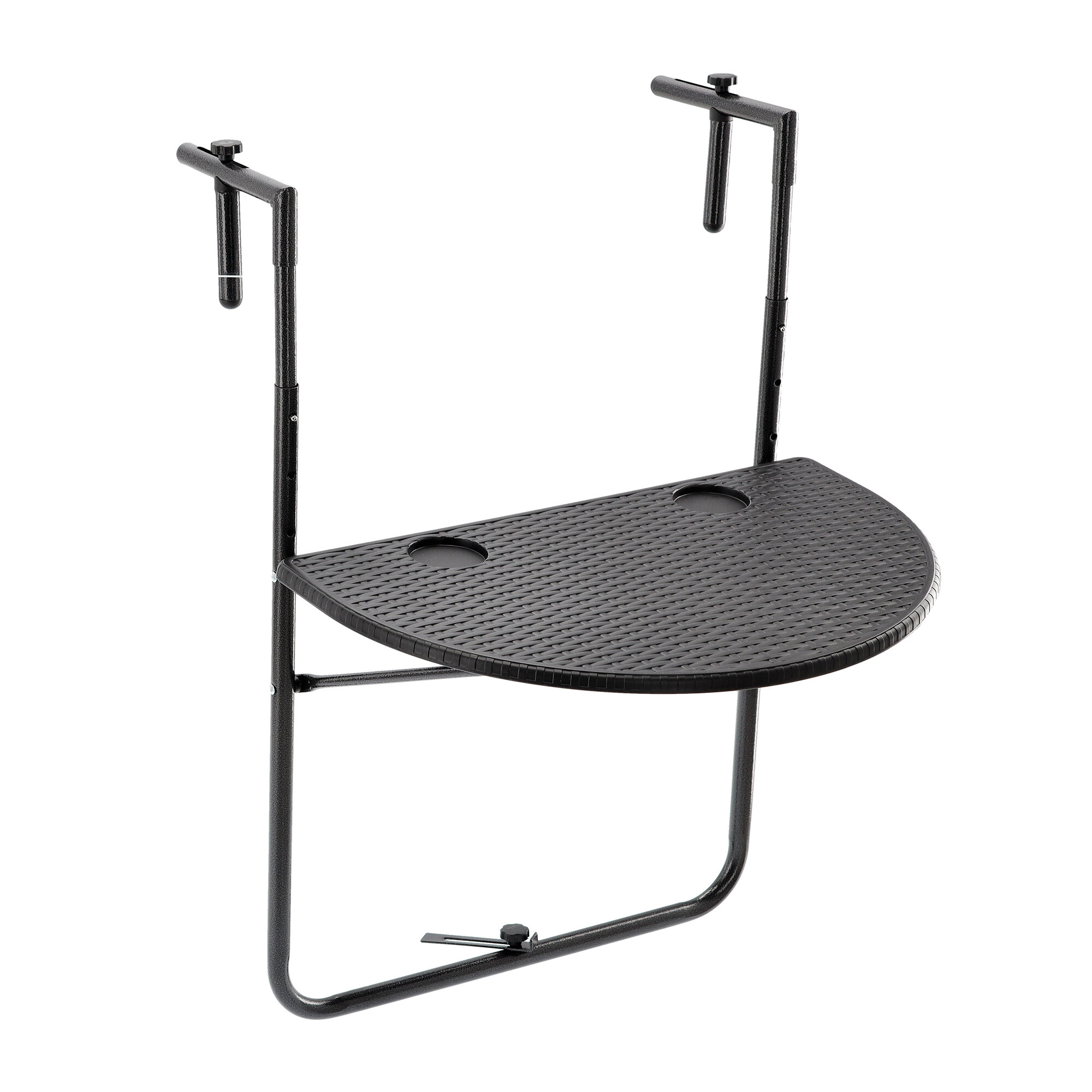 Miza je izdelana iz trpežnega materiala, ki je zasnovan tako, da prenese tudi zahtevne pogoje zunanjega okolja. Črna barva daje mizi eleganten videz, ki se popolnoma zlije z okolico vašega balkona.
