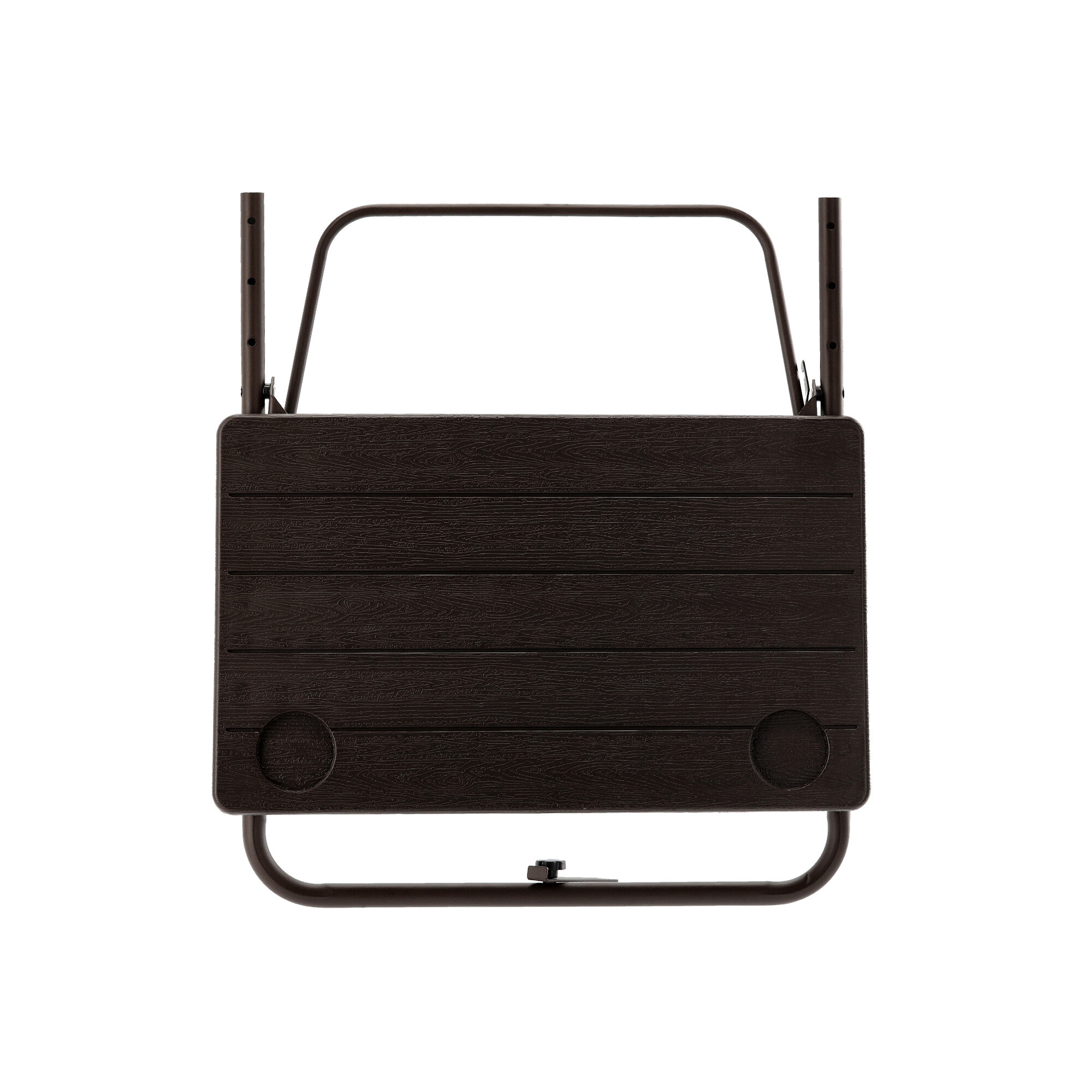Sama površina mize, nastavljiva po višini 73/78,5 ali 83,5 cm, je opremljena z dvema držaloma za pijačo.Prednost te mize je njena izjemna zložljivost in enostavna sestavljivost.