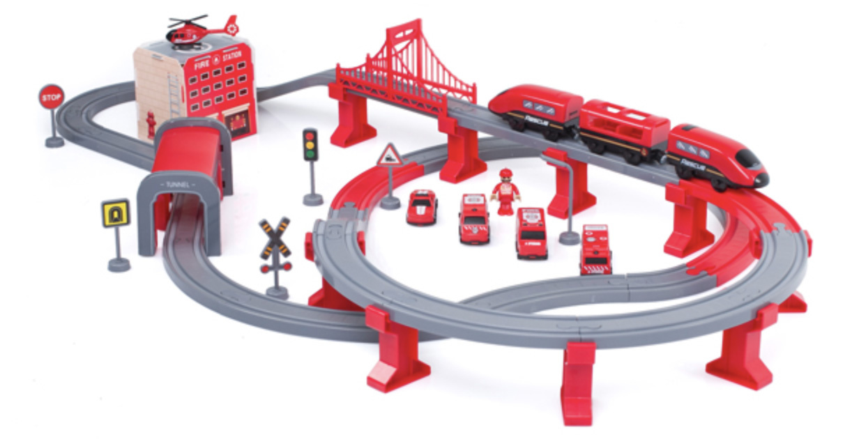 Železniška proga je dovolj velika, da se lahko z njo hkrati igra več otrok.