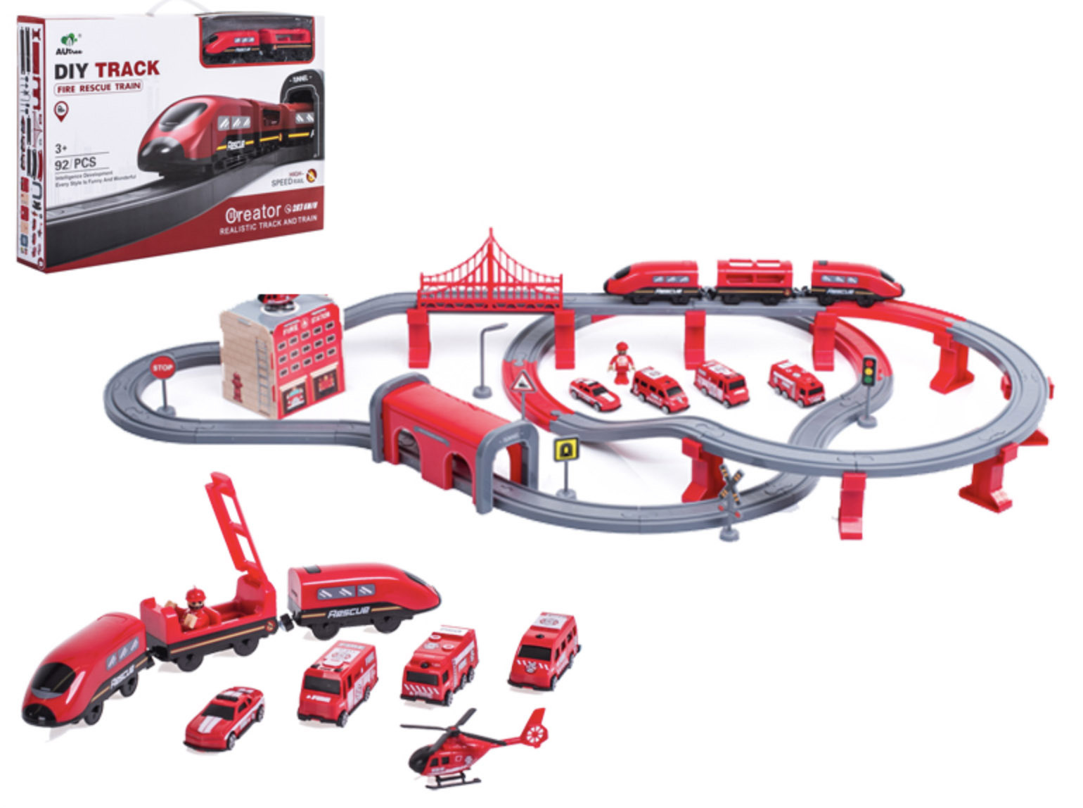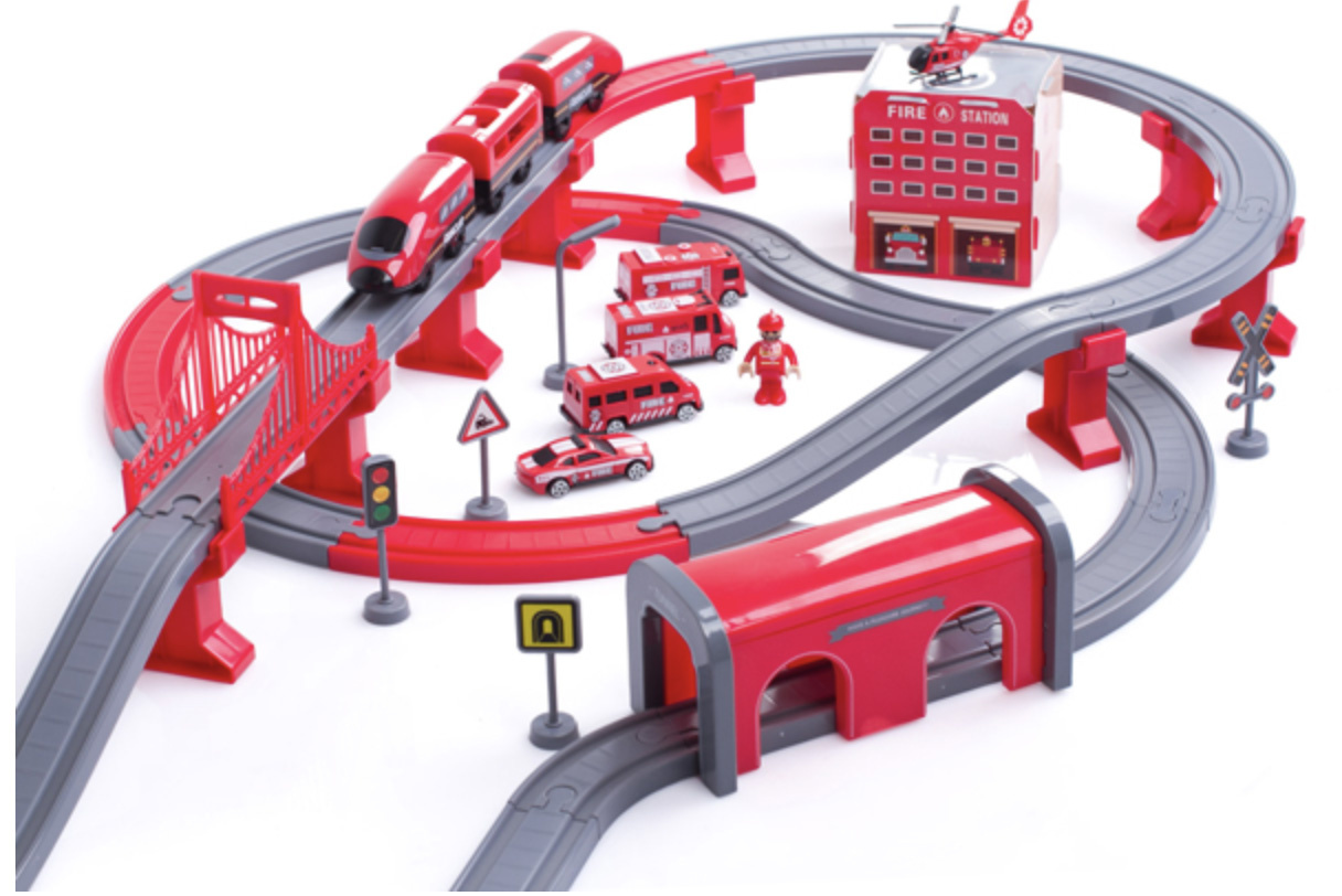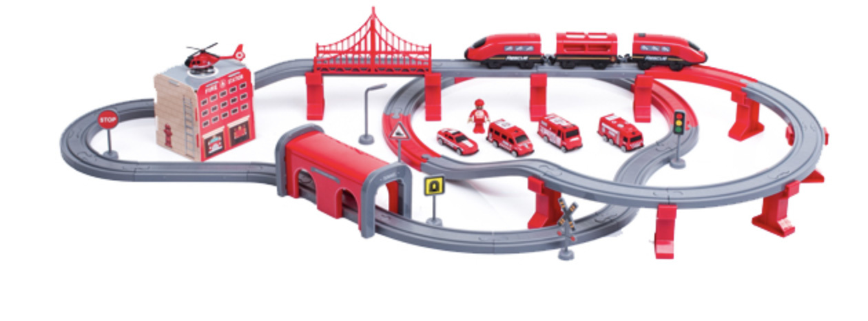 Ta model železniške proge je namenjen vsem majhnim fantom in dekletom, ki imajo radi vlake in vse okoli njih.
