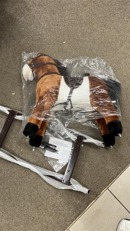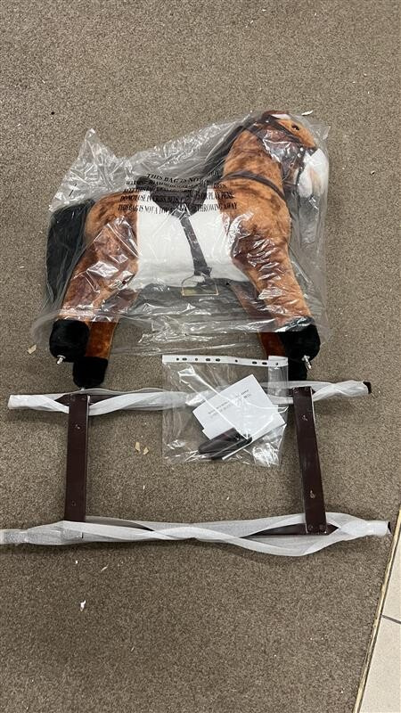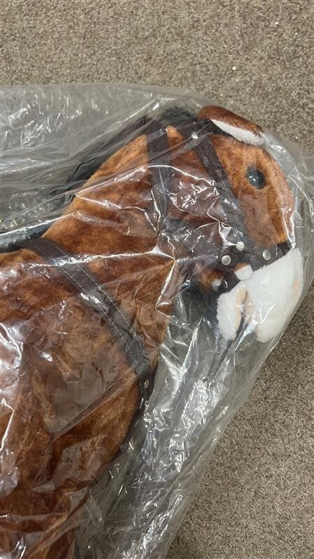 - Igrača ima sedlo s stremeni, uzdo in lesene ročaje