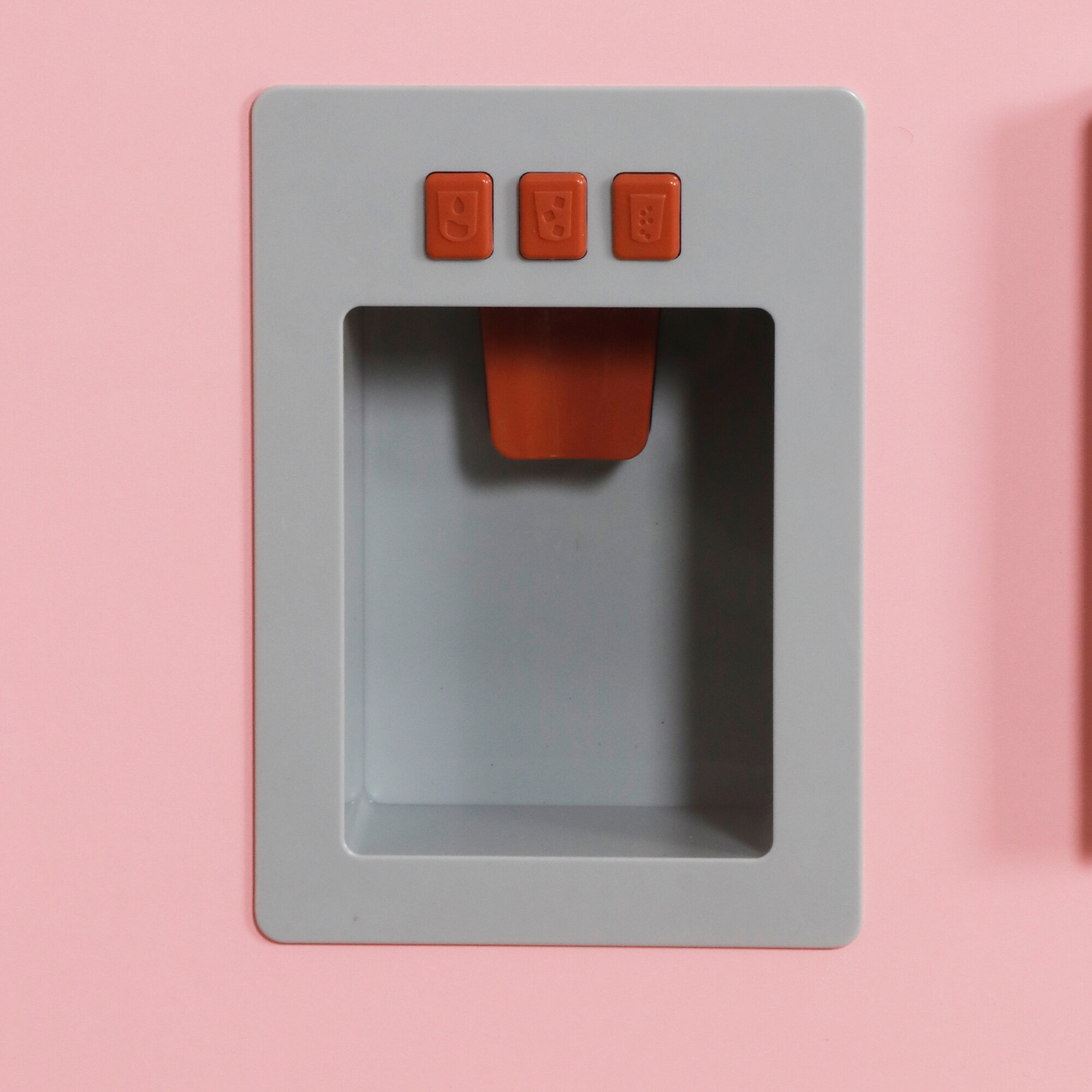 V kuhinji ne manjka police za shranjevanje posode in kavljev za obešanje kuhinjskih pripomočkov.Pomivalno korito v kuhinji je odstranljivo, tako da ga lahko otrok napolni z vodo in po končanem delu v kuhinji pomije posodo.