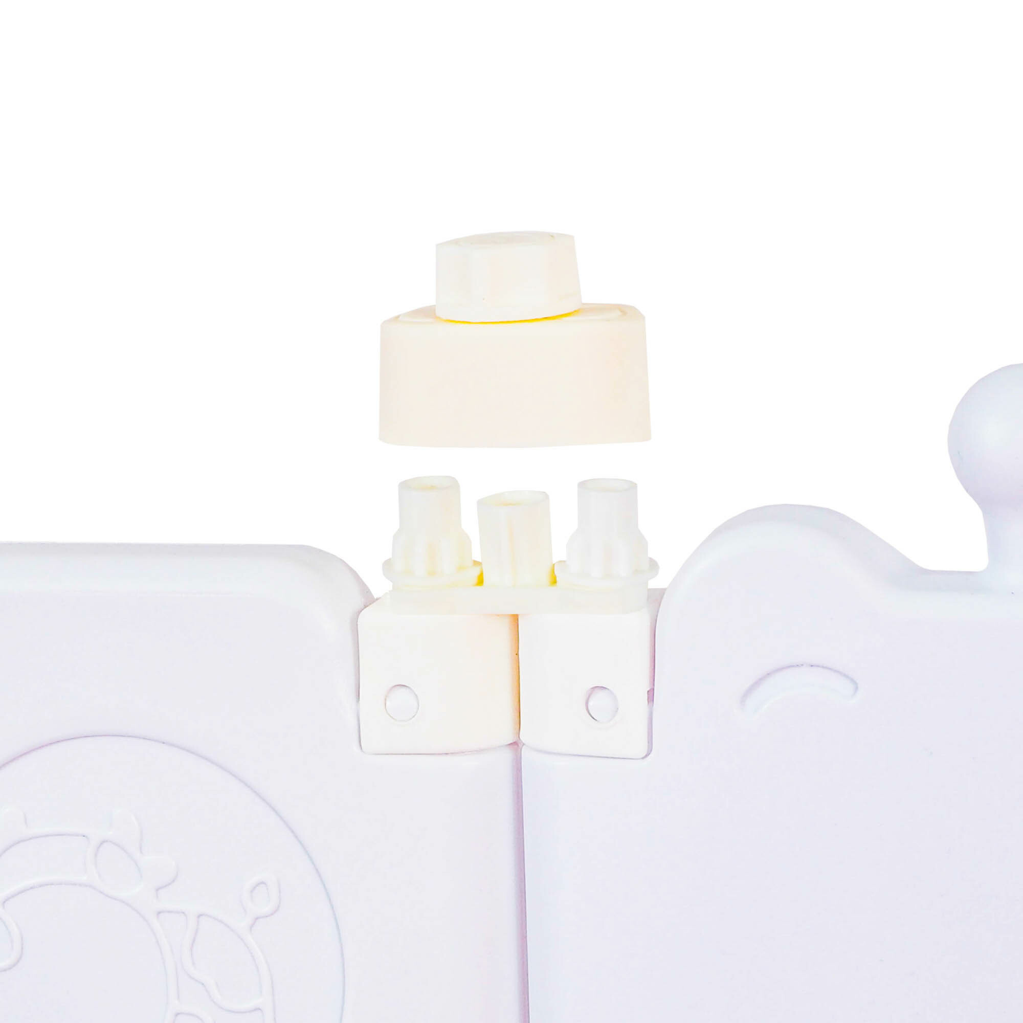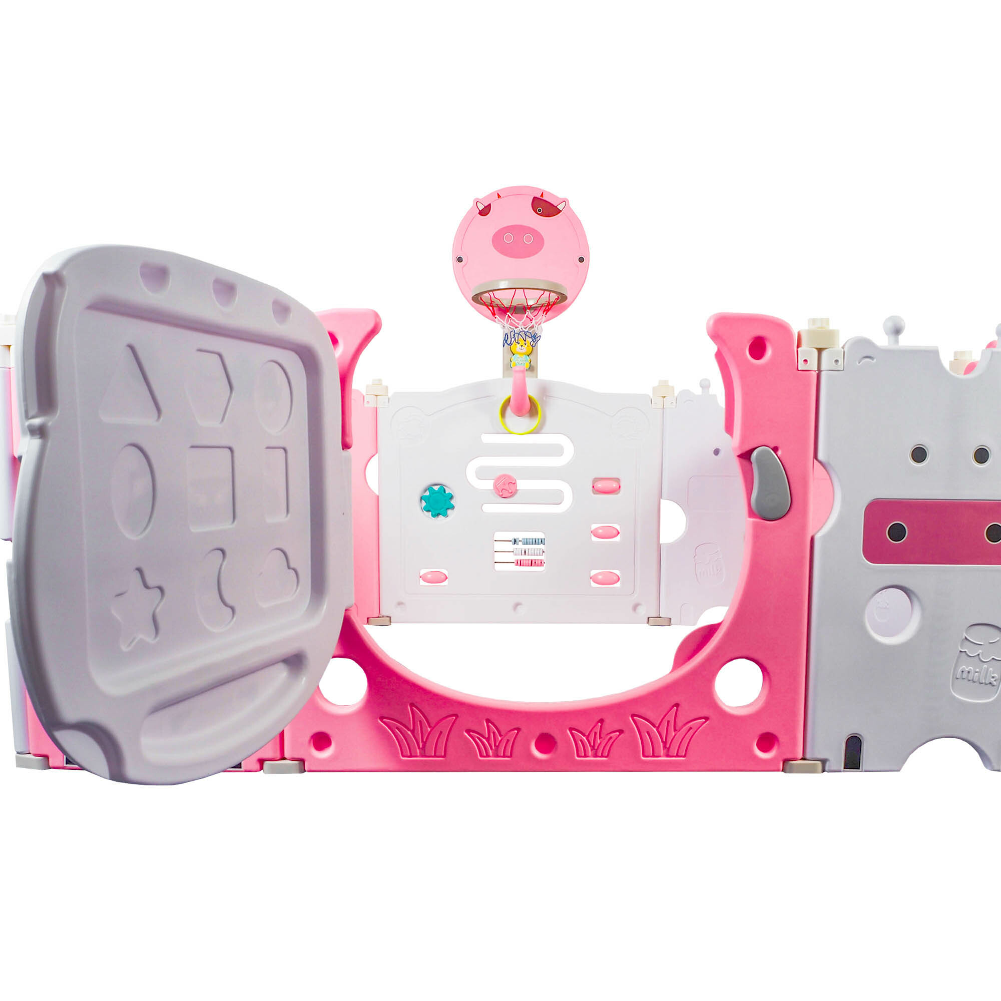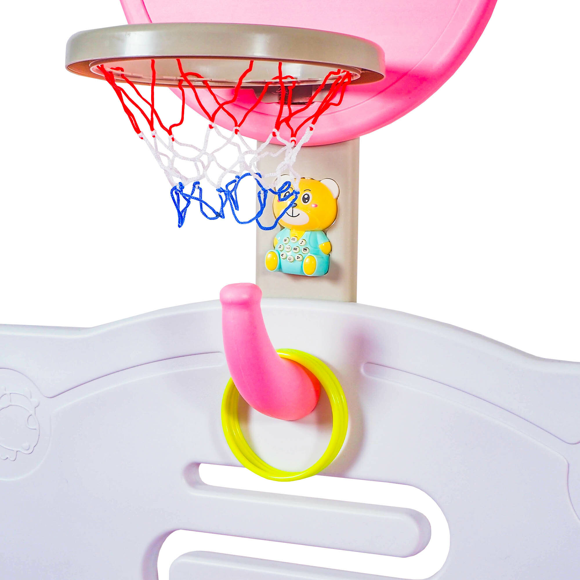 Plastična ograja ni le navaden prostor za igro. Opremljena je s košem za košarko in žogo, kar otrokom omogoča razvijanje motoričnih spretnosti in koordinacije. Poleg tega je del ograjice interaktivni medvedek z zvočnimi učinki, ki otroke zabava in spodbuja njihov čutni razvoj. Medvedek oddaja različne zvoke, ki spodbujajo otroško radovednost in podpirajo njihov kognitivni razvoj.