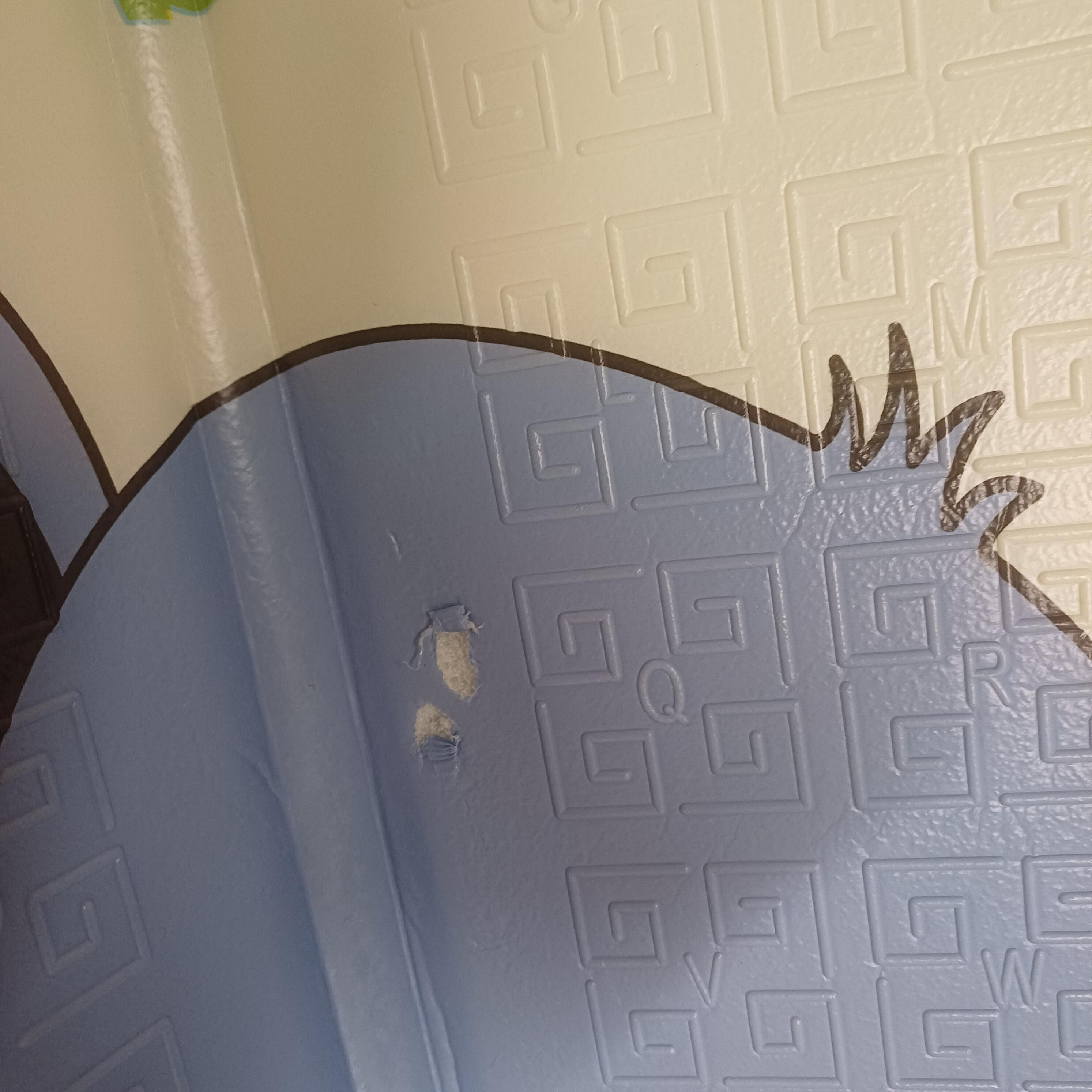 Izdelek je brez originalne embalaže in ima vidno poškodbo – luknjo v enem od delov podloge. Napaka lahko vpliva na udobje pri uporabi.