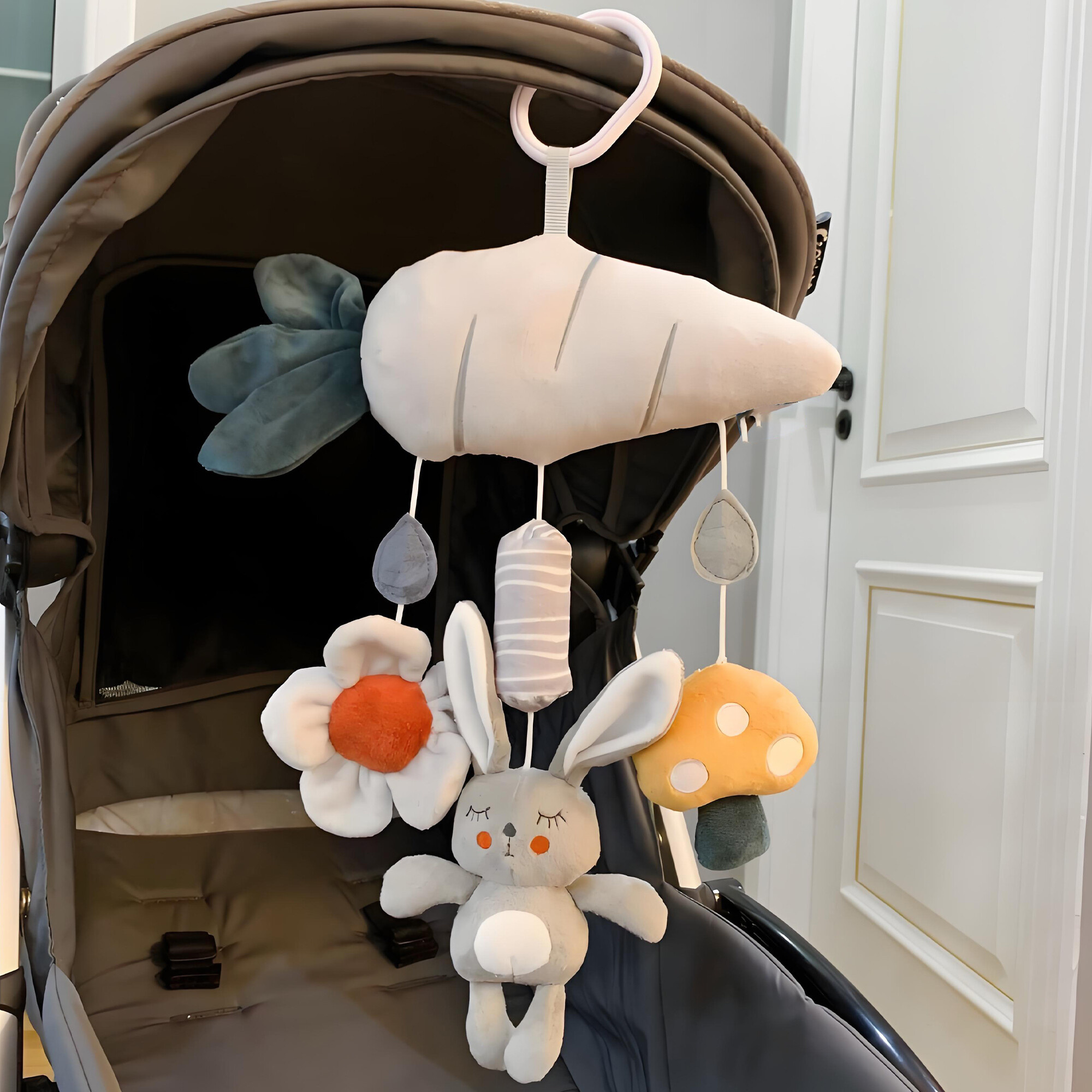 Šumeči in zvončki elementi dodajajo igri dodatno dimenzijo. Nežno šelestenje in melodično zvonjenje spodbujata sluh in razvijata slušno zaznavanje. Ti zvoki bodo pritegnili dojenčka in ga spodbudili k aktivnemu raziskovanju igrače. Različne teksture, iz katerih je igrača izdelana, spodbujajo dotik in razvijajo fino motoriko. Dojenček se bo učil prepoznavati različne površine in teksture, kar mu bo pomagalo pri njegovem motoričnem razvoju.