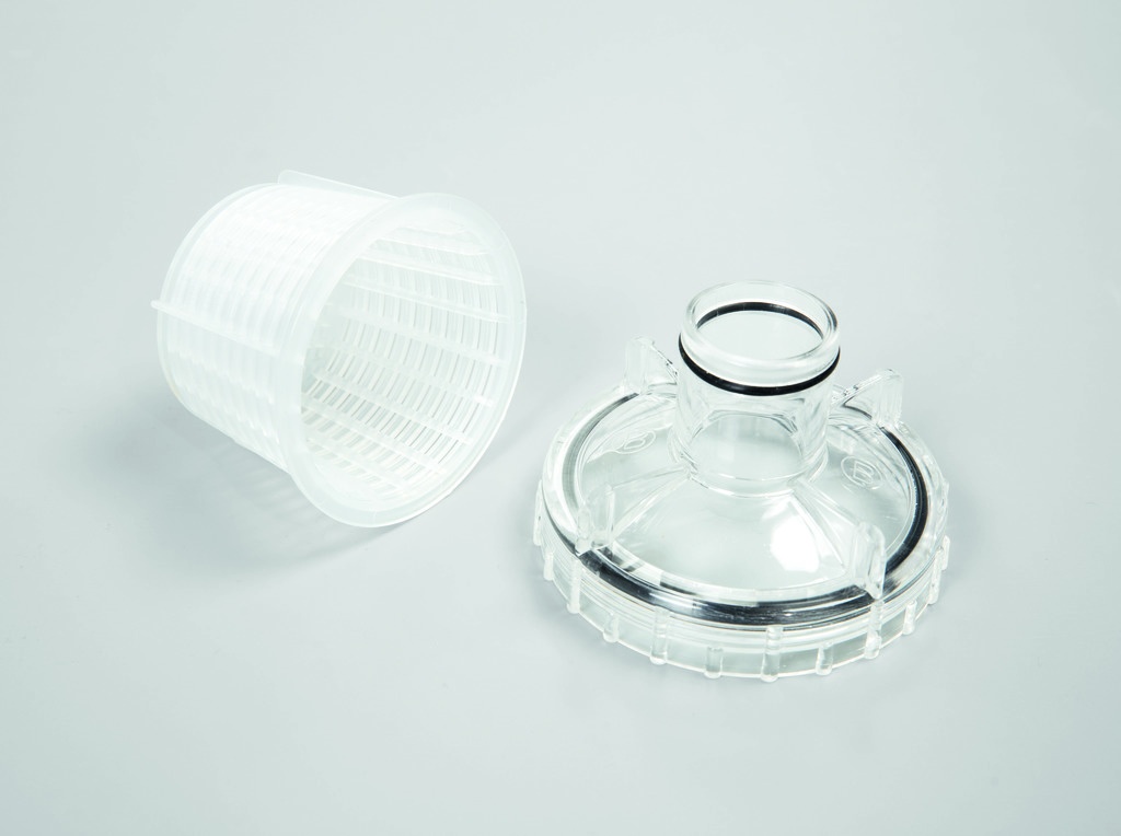 Filtrska posoda je povezana s črpalko s fleksibilno cevjo.