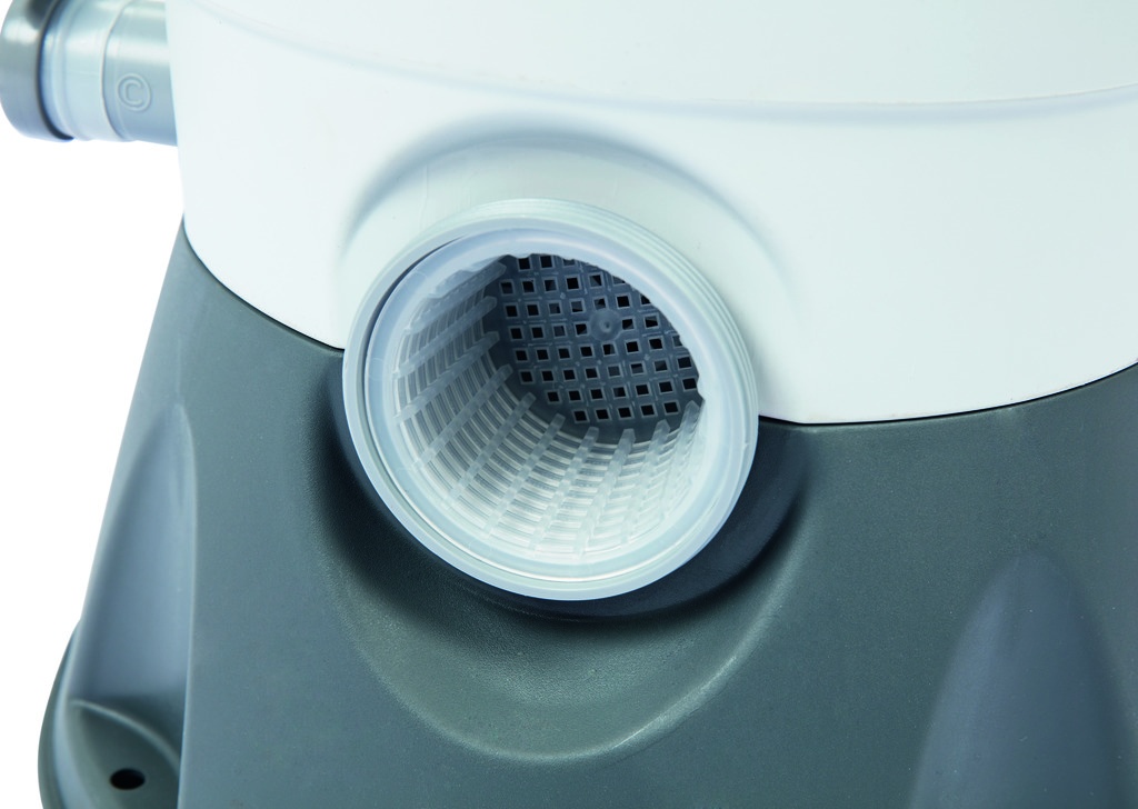 Peščena filtrirna naprava podjetja Bestway je sestavljena iz plastičnega podstavka, polipropilenske filtrirne posode z zgornjim 6-smernim ventilom, manometra in črpalke s predfiltrom za grobe nečistoče.