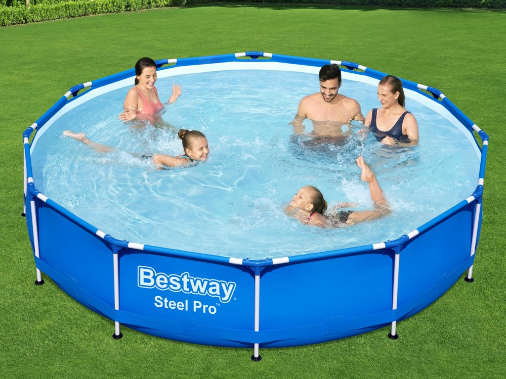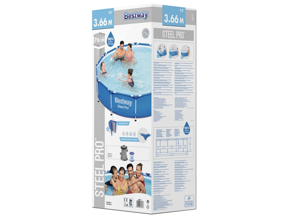 Vrtni bazen Bestway Steel Pro™ z dimenzijami 366 x 76 cm in prostornino 6 473 litrov vam bo zagotovil blagodejno ohladitev v vsakem vročem dnevu. Senzacionalen okrogel bazen z impresivnimi dimenzijami bo odlična alternativa za preživljanje časa z družino in za odlično zabavo.