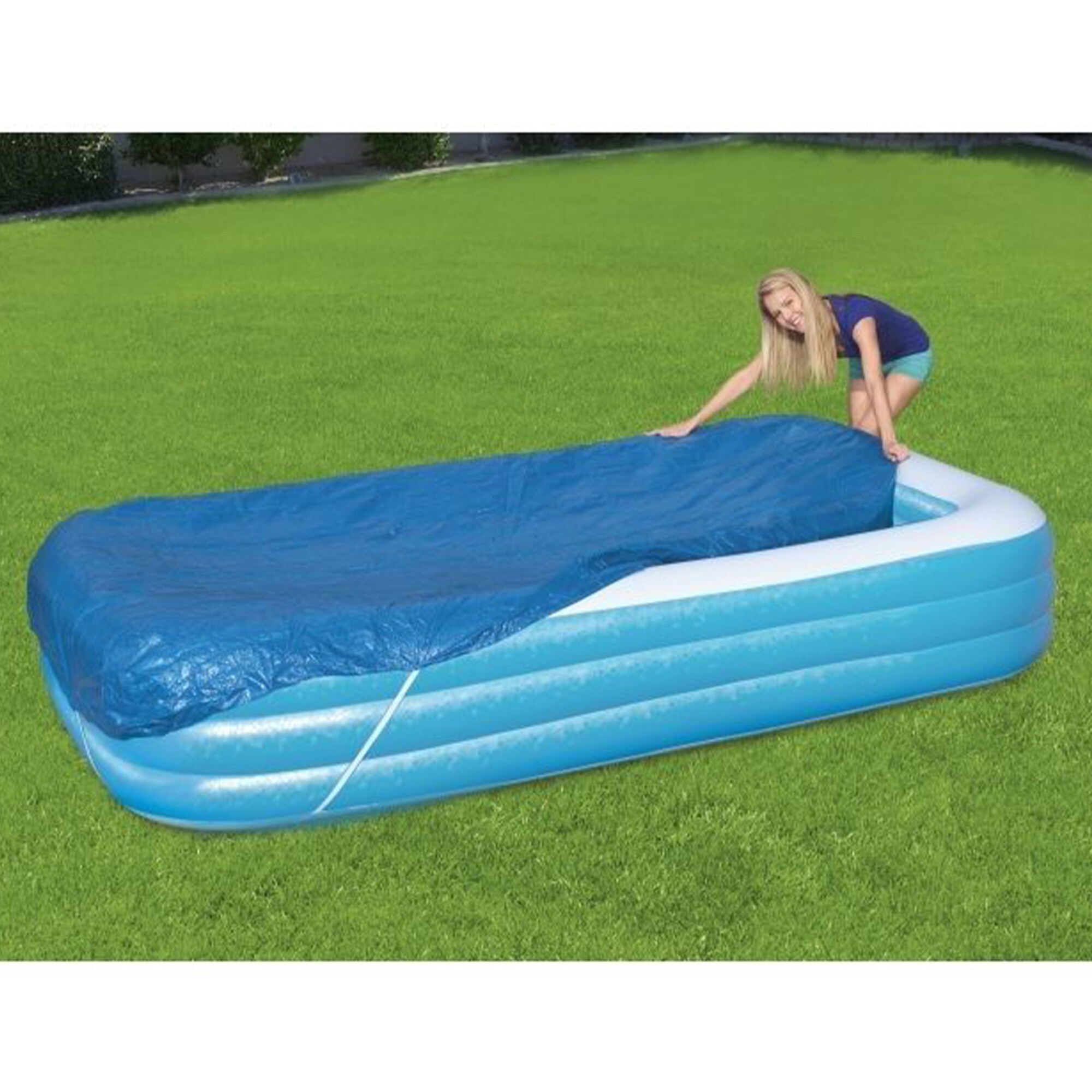 Pokrov za bazene Bestway velikosti 305x183x56 cm, nudi odlično zaščito pred dežjem in padcem umazanije v vaš bazen, ko bazen ni v uporabi.