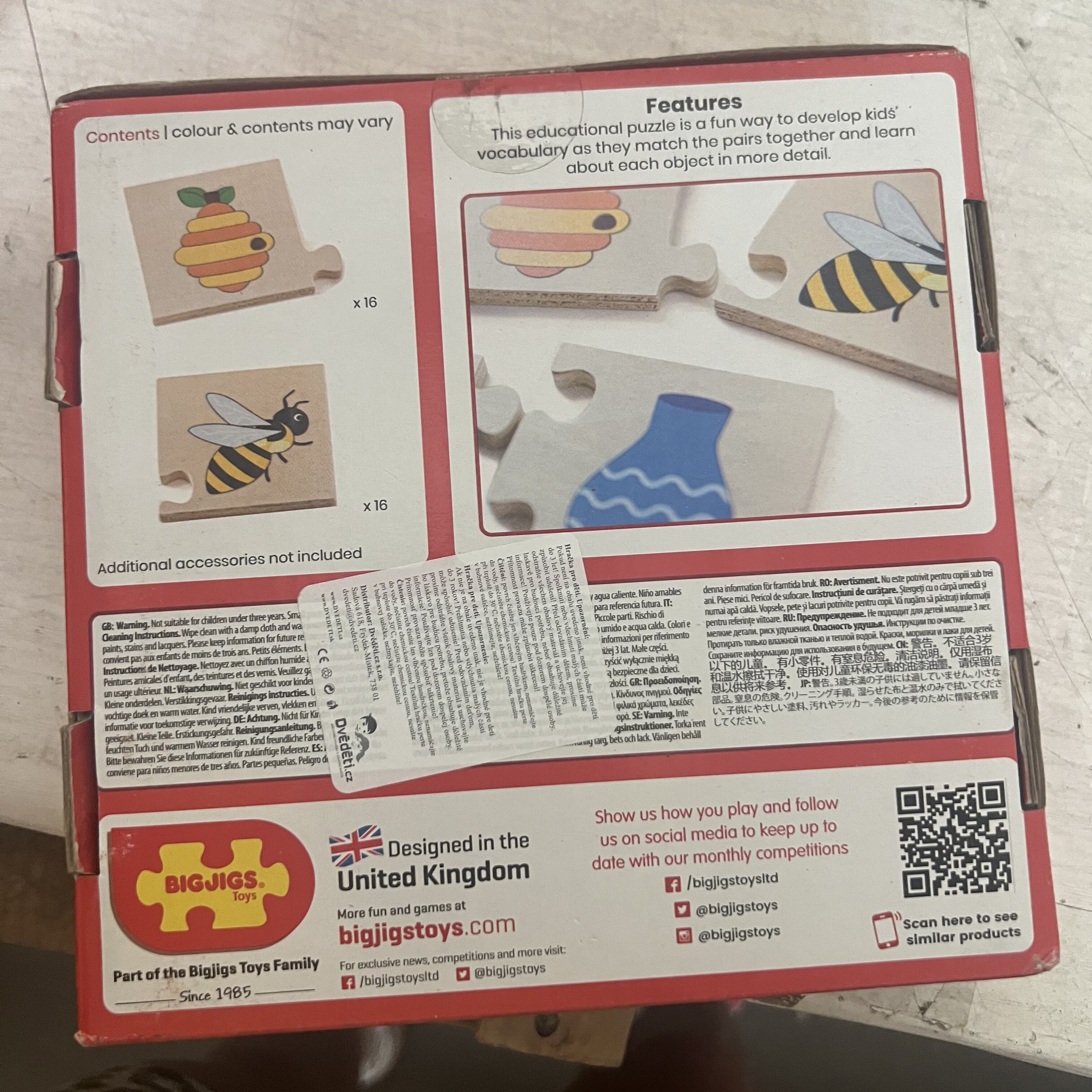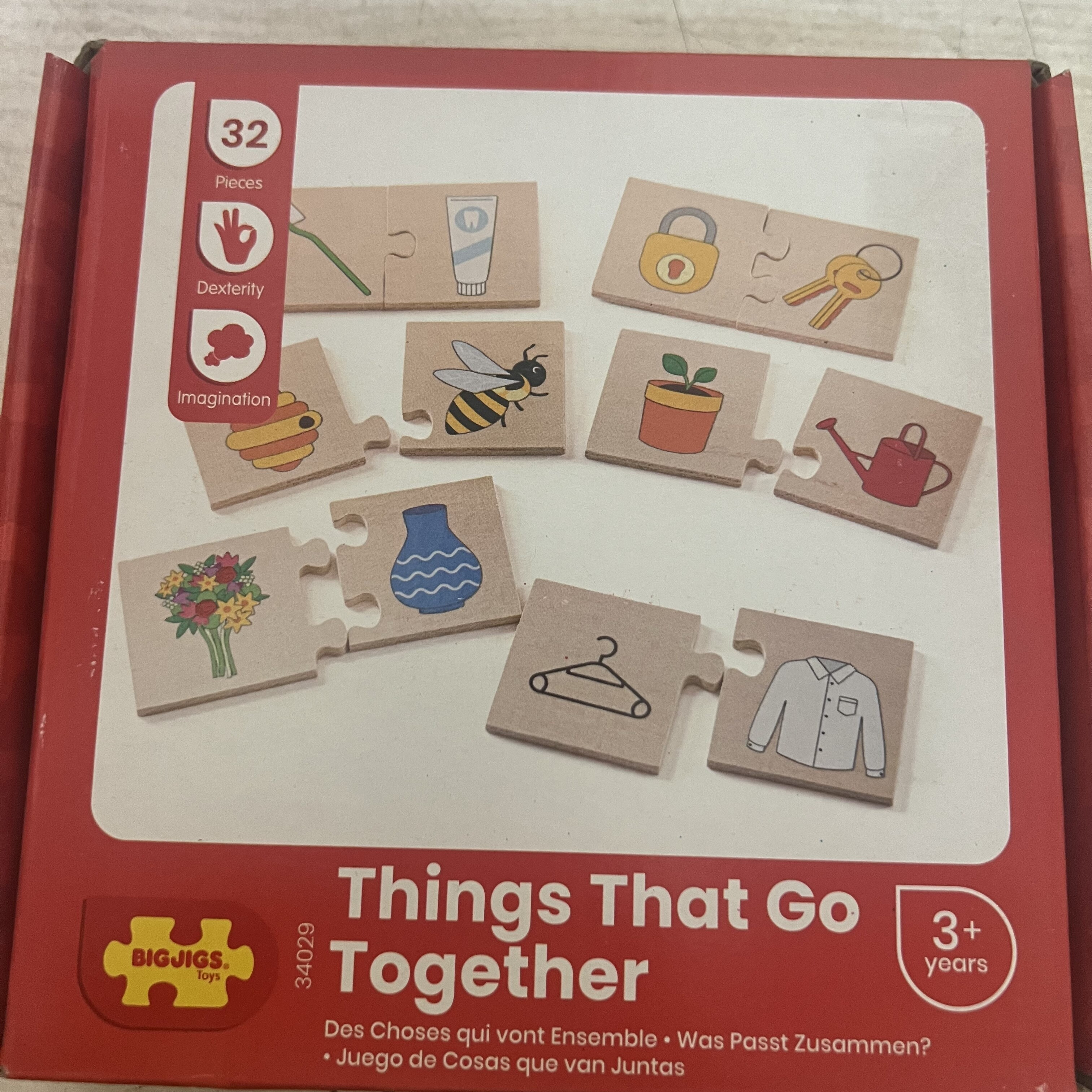 Sestavljanka Kaj sodi skupaj, uči otroke o različnih vsakdanjih predmetih, ki sodijo skupaj.S čim se dopolnjuje čmrlj?Kaj pa ključavnica?Ta izobraževalna sestavljanka je zabaven način za razvijanje besedišča otrok, ko povezujejo pare in se podrobneje učijo o vsakem predmetu.Gladki robustni koščki sestavljanke so idealne velikosti za majhne ročice, da jih lahko primejo, postavijo in raziskujejo.Izdelano iz prvovrstnega, odgovorno pridobljenega lesa in barvano z nestrupenimi barvami in laki.Izpolnjuje trenutne evropske varnostne standarde. Izdelano iz visokokakovostnih, odgovorno pridobljenih materialov.Dimenzije: 6x5,9x0,6 cm