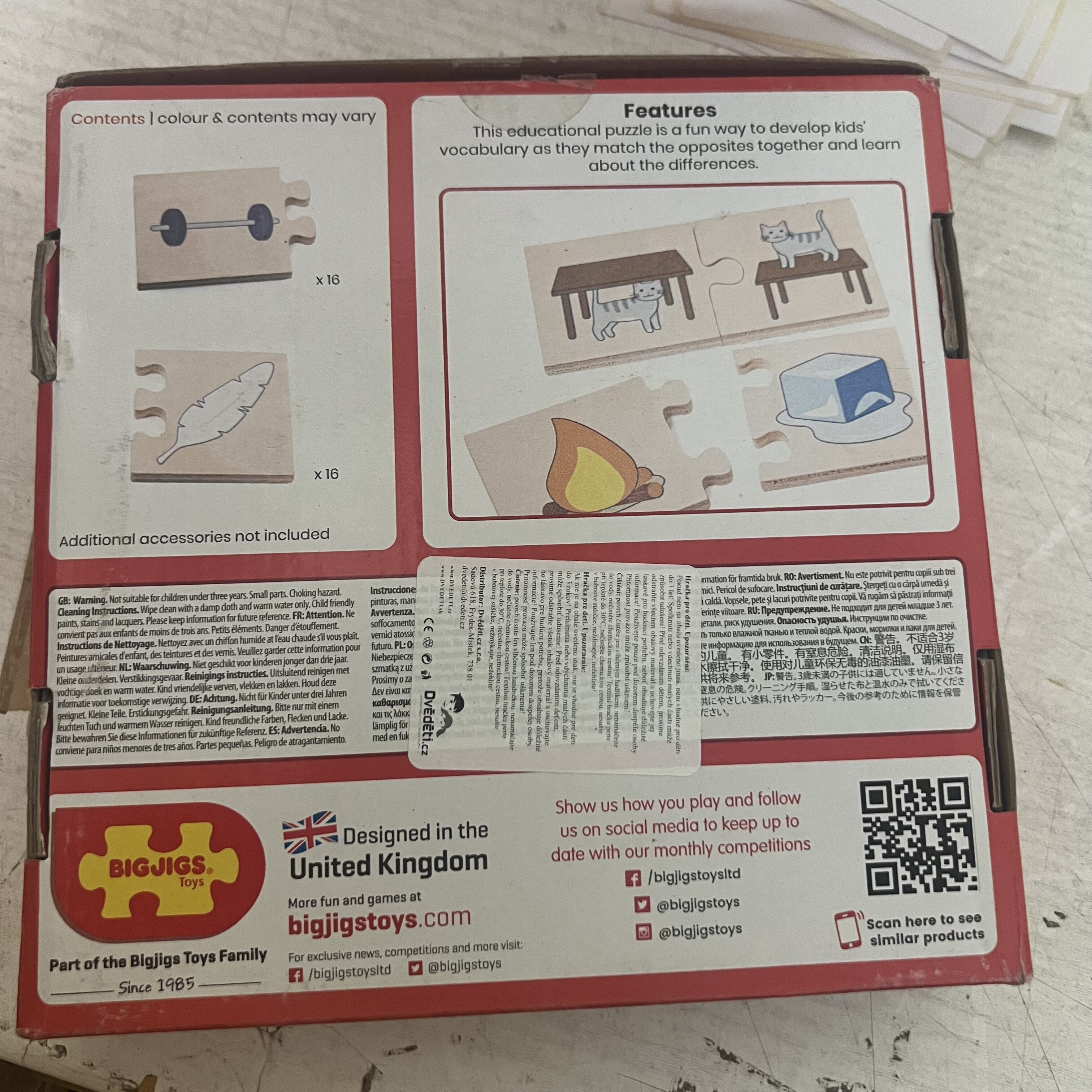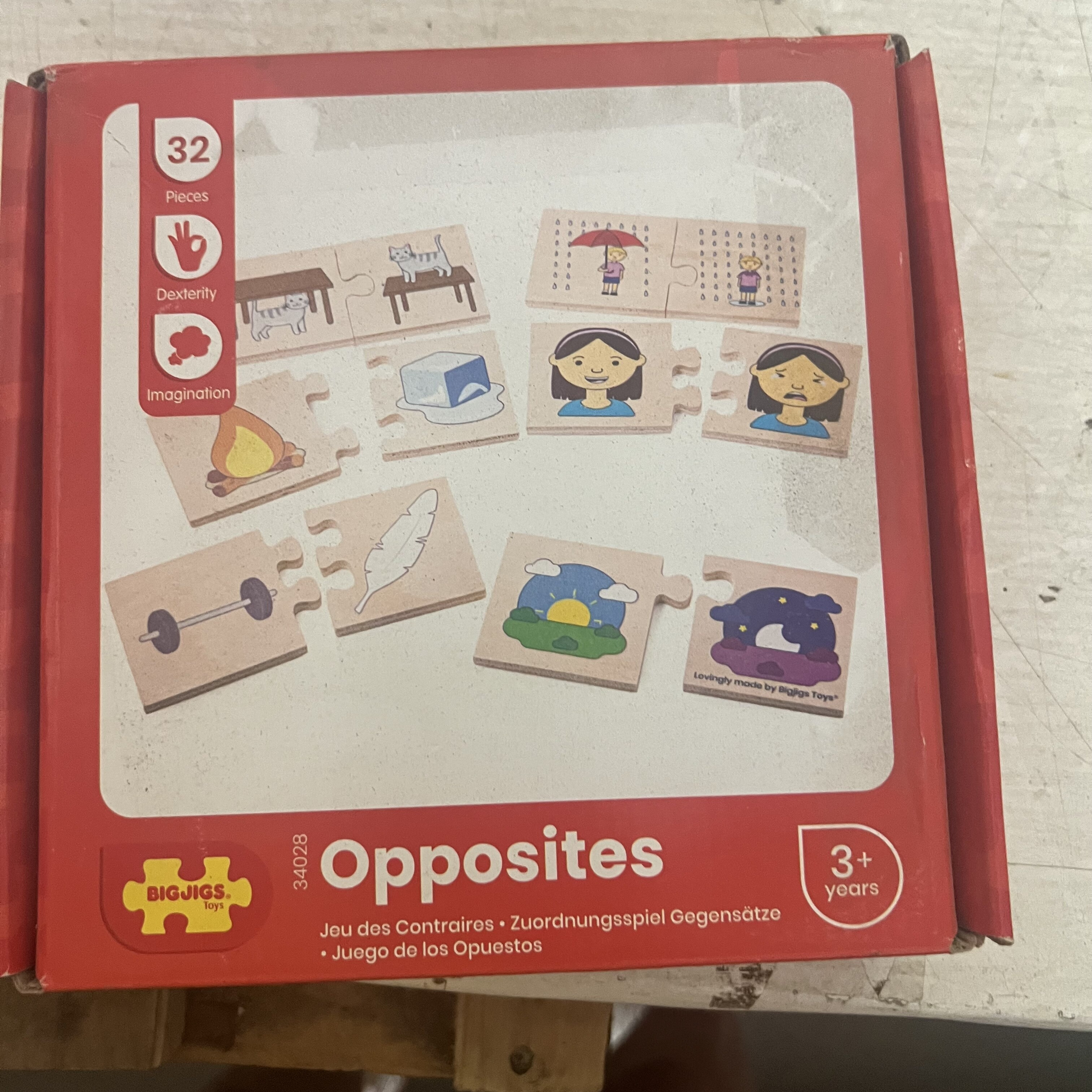 Naša sestavljanka Nasprotja uči otroke o različnih vsakdanjih predmetih in stvareh, ki so si medsebojna nasprotja.Kaj je nasprotje žalostnega?Kaj je nasprotje mraza?To didaktično sestavljanko je zabaven način za razvijanje besedišča otrok, ko povezujejo nasprotja.Gladki robustni koščki sestavljanke so idealne velikosti za majhne ročice, da jih lahko primejo, postavijo in raziskujejo.Izdelano iz prvovrstnega, odgovorno pridobljenega lesa.Izpolnjuje trenutne evropske varnostne standarde. Izdelano iz visokokakovostnih, odgovorno pridobljenih materialov.Dimenzije: 6x5,9x0,6 cm