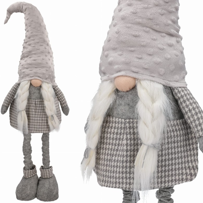 DUH - DUH na teleskopskih nogah A-899391 Višina: 60 - 90 cm (s klobukom) Širina: 27 cm ČUDOVITA DEKORACIJA - popolna ideja za darilo Škrati so dobri duhovi vsakega doma. Zaradi teže stoji figurica stabilno in se najbolje počuti na kaminu, ob dišeči božični jelki in v otroški sobi. barva: odtenki sive lepa pikčasta krznena kapa
