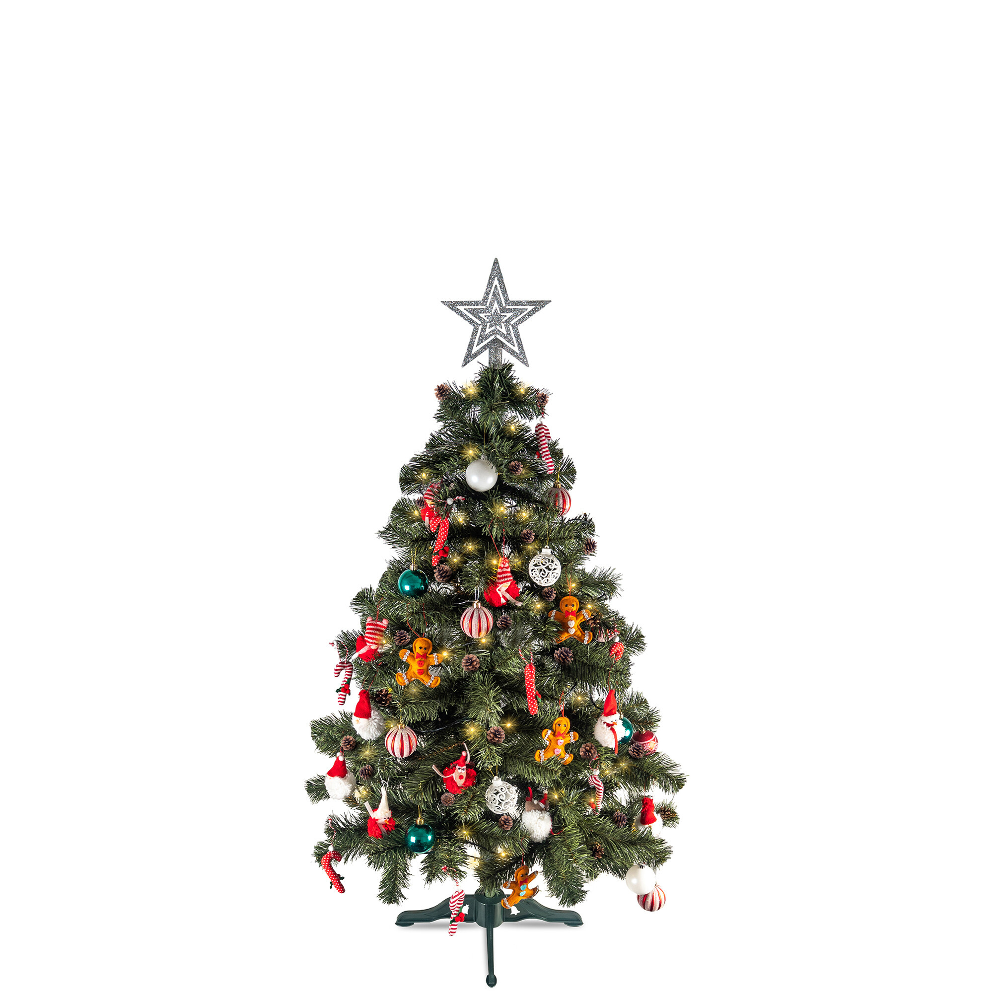 Razkošno umetno božično drevo s skupno višino 150 cm v naravnem videzu lepe zelene goste jelke.