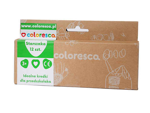 Z barvicami COLOResca se noben malček ne bo dolgočasil. Krede Elderly so na voljo v 12 barvah in so idealne za starejše otroke. To so močne krede (premer cca. 14 mm) z rahlo grobo površino, za katero je značilna visoka trdnost - zelo težko se lomijo.