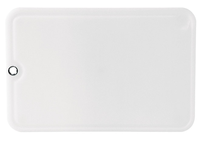 masivna plastična deska (45 x 29 cm) visoko elastična struktura materiala - brez vonja in okusa odtok tekočin v utor možno obesiti na kuhinjsko palico z integriranim očesom izdelano v Nemčiji 100% higiensko enostavno vzdrževanje: primerno za pomivalni stroj dimenzije: 45 x 29 cm (d x š) material: plastika barva: bela