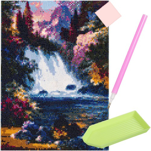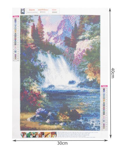SPECIFIKACIJA – vzorec: slap; platno prekrito z lepilno plastjo: da; v kompletu: barvni diamanti, aplikator, suho lepilo, posodica; dimenzija: 30x40 cm; dimenzija slike: 25x35 cm; teža: 0,1 kg; teža v paketu: 0,103 kg