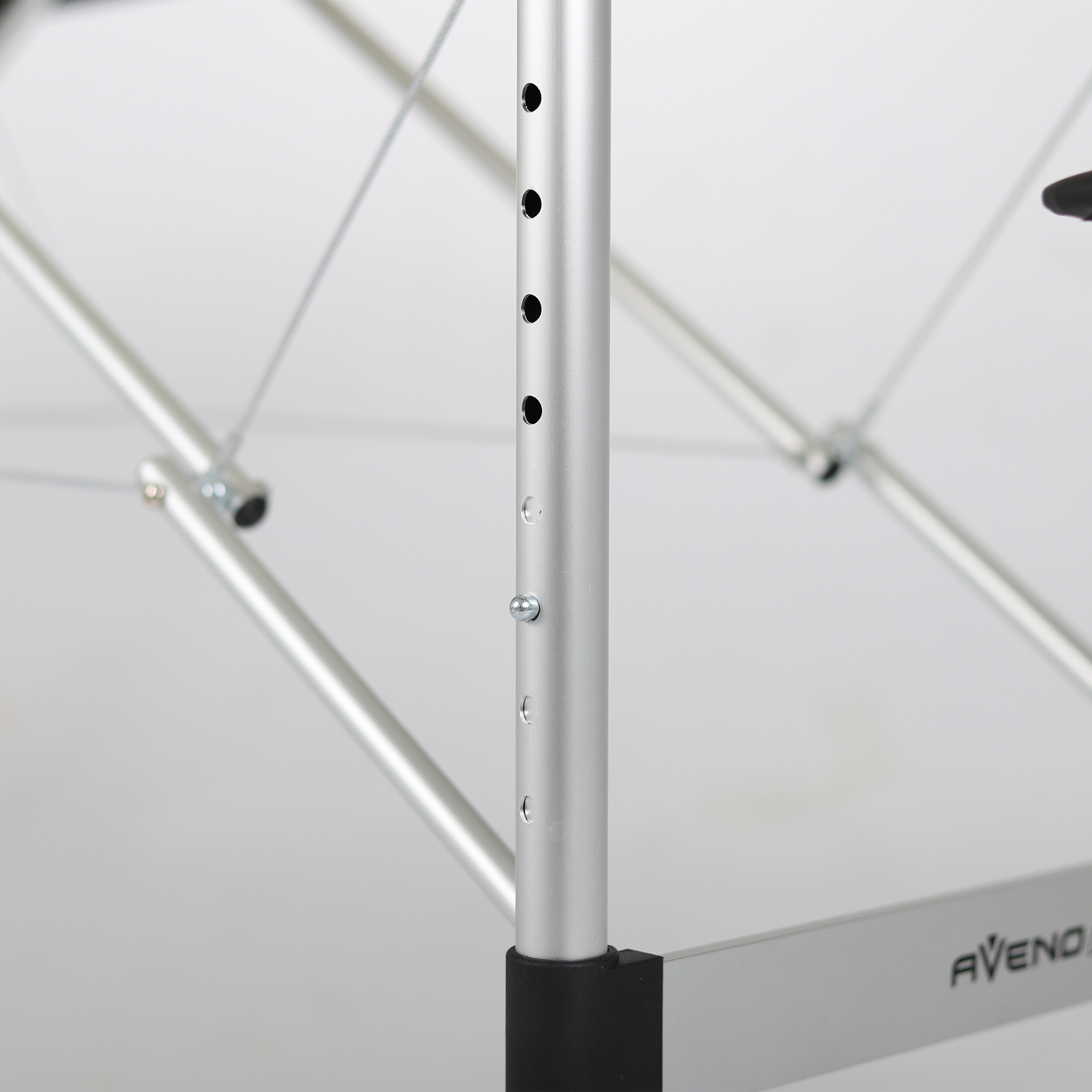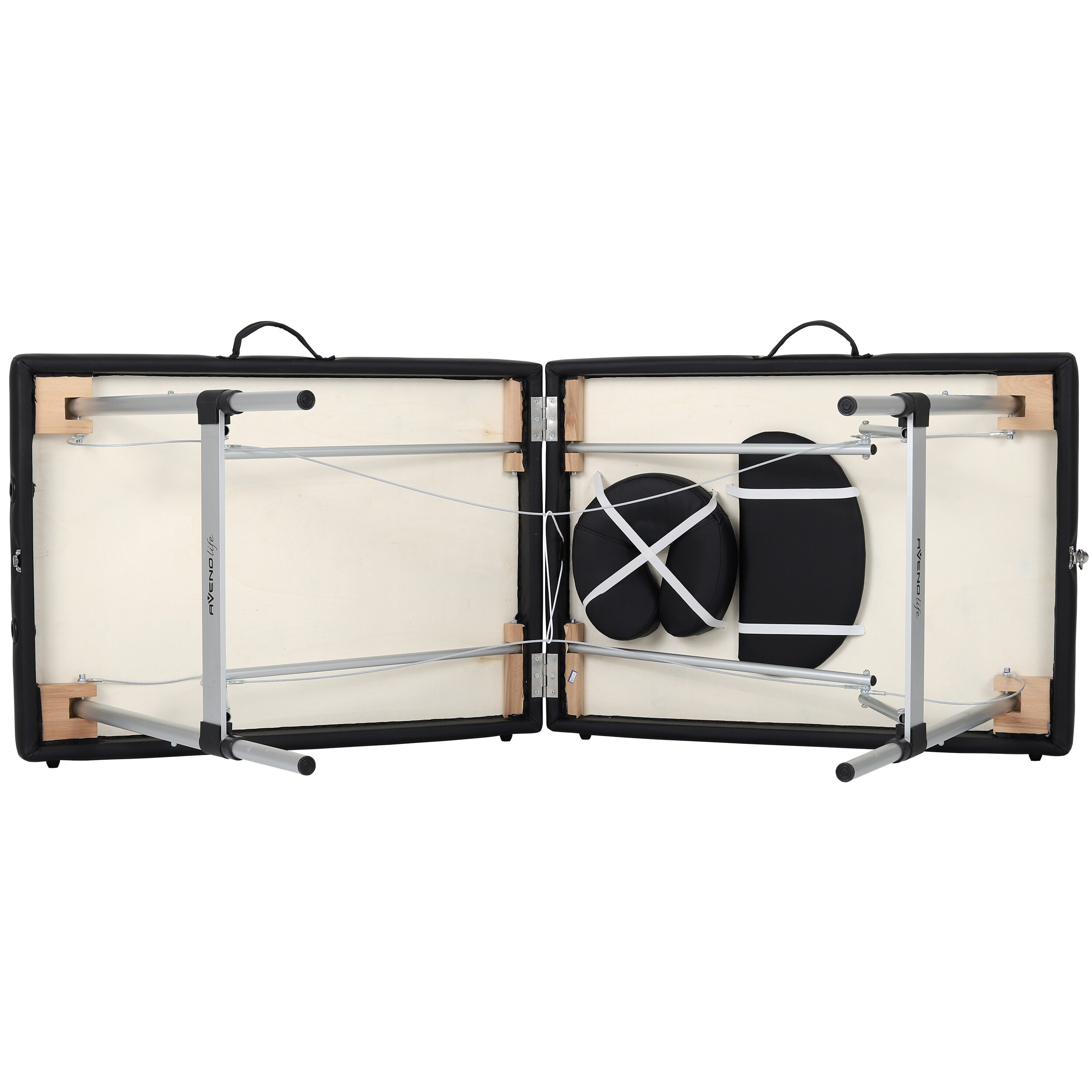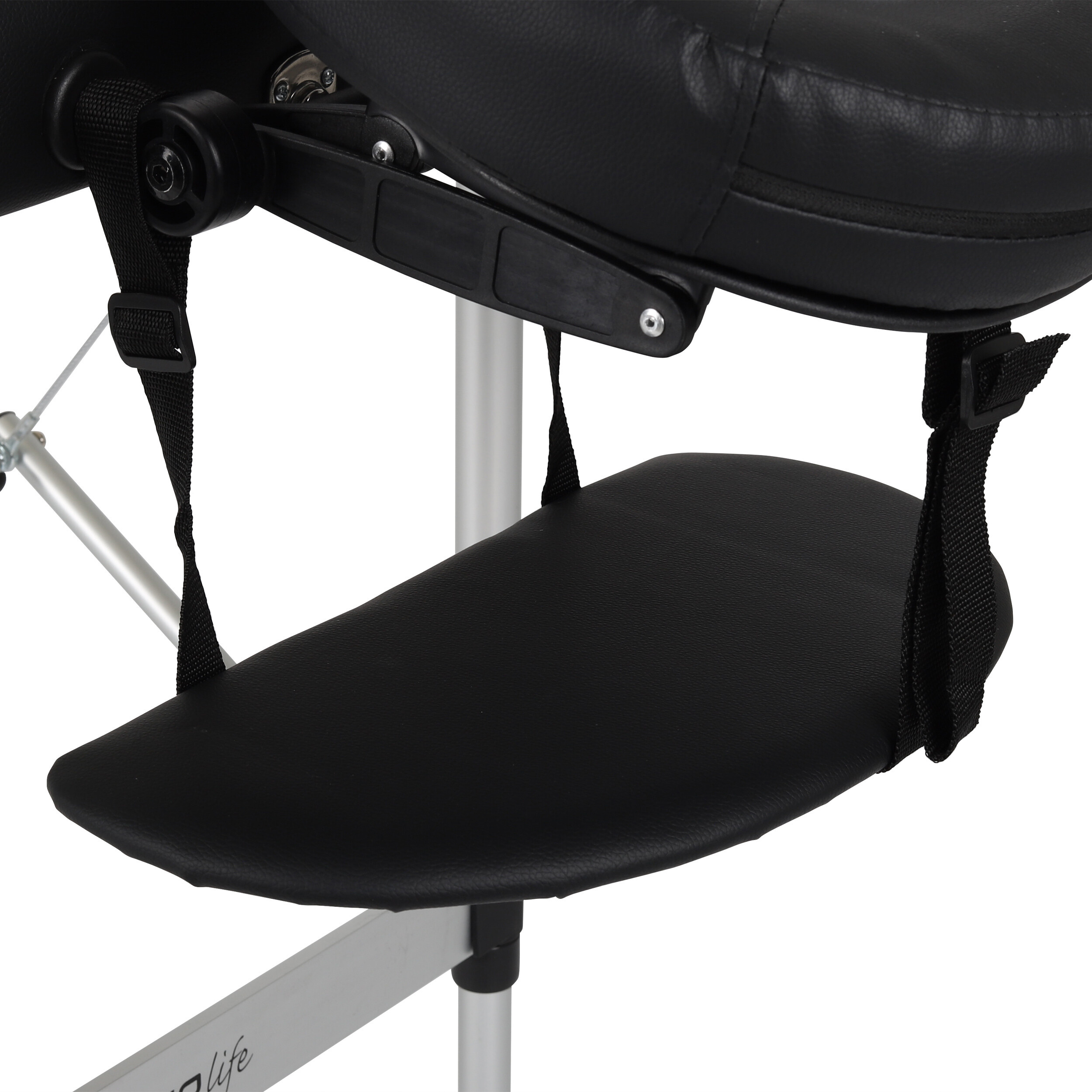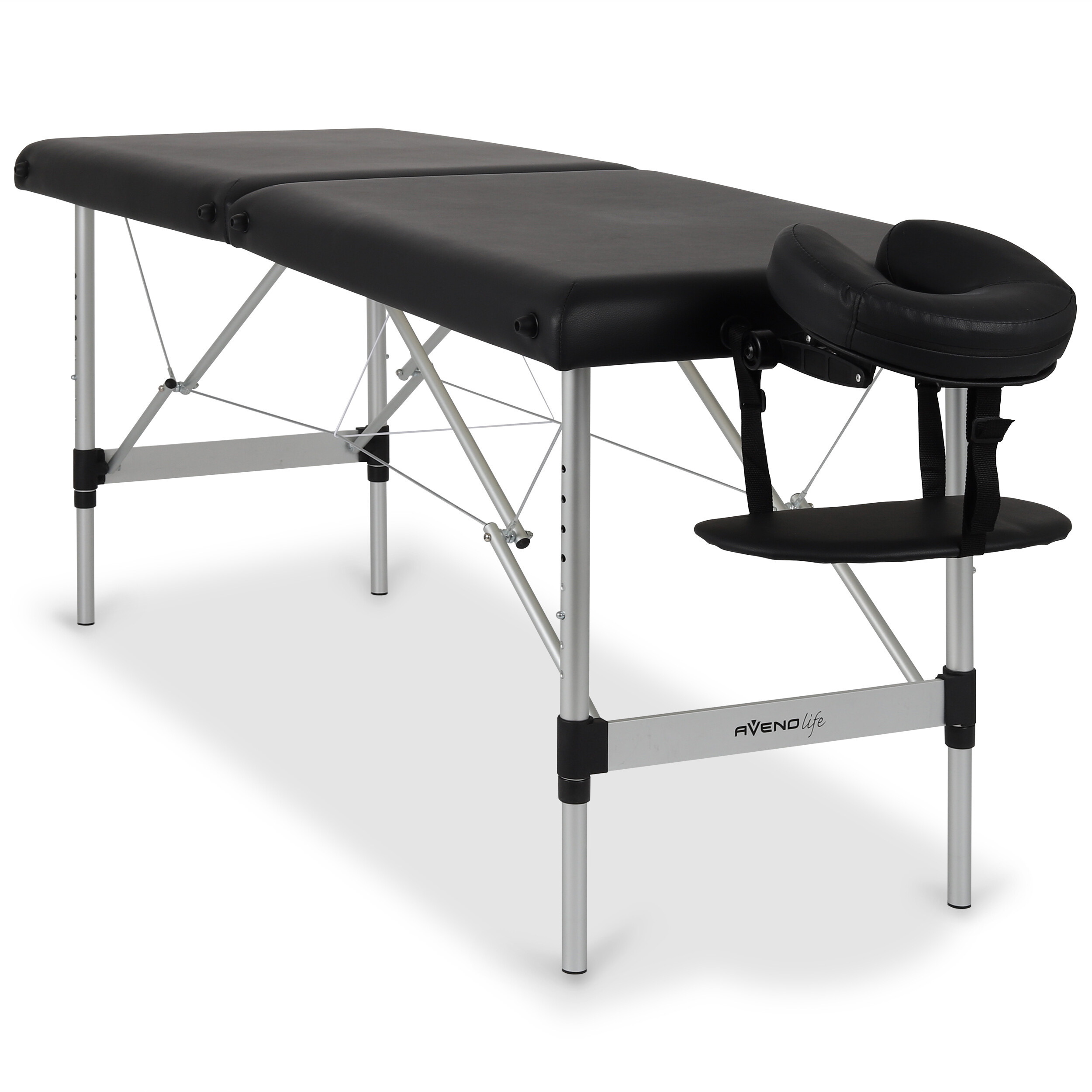 Varnost in stabilnost sta pri masaži ključni. Aluminijasta masažna miza je opremljena z nedrsečimi nogicami, ki zagotavljajo trdno postavitev na katerikoli površini. Nastavljiva višina ležalnika omogoča prilagoditev njegove višine glede na potrebe maserja, kar zagotavlja ergonomsko in udobno delo. Zaradi ojačitve z jeklenimi vrvmi in varnostnimi klini na vsaki podporni nogi lahko prenese obremenitev do 250 kg.