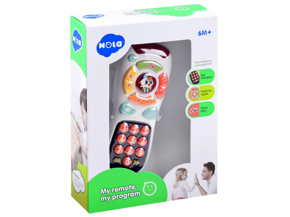 Interaktivna igrača v obliki daljinskega upravljalnika televizije je ponudba podjetja Hola za radovedne malčke od 6 mesecev starosti.