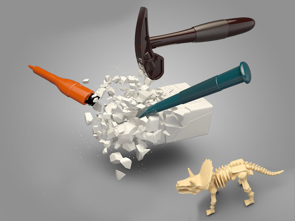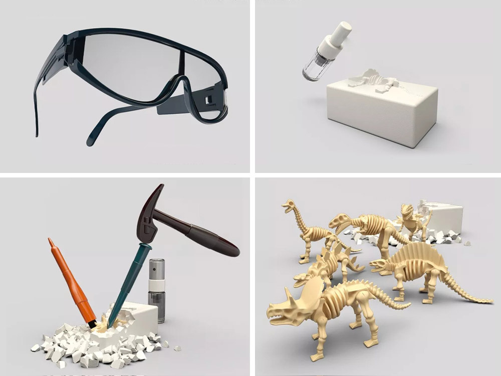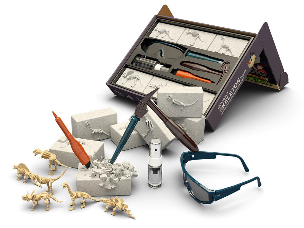 Postanite paleontolog in izkopljite iz mavca kosti prazgodovinskih dinozavrov, živali, ki so živele na Zemlji pred tisočimi leti. To je senzacionalen komplet za malega paleontologa, ki pomaga razvijati domišljijo in znanje o prazgodovinskih bitjih.Set vsebuje: