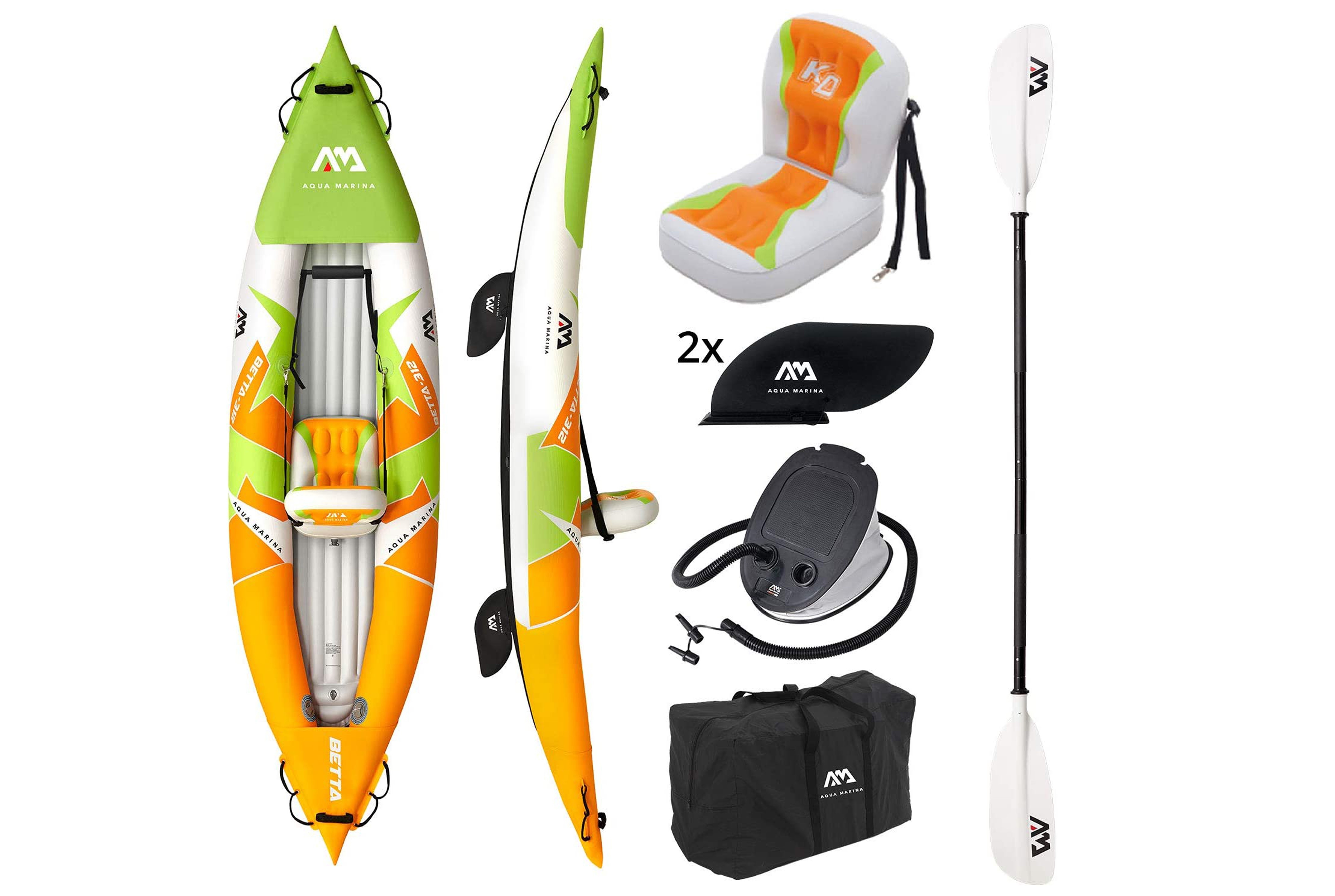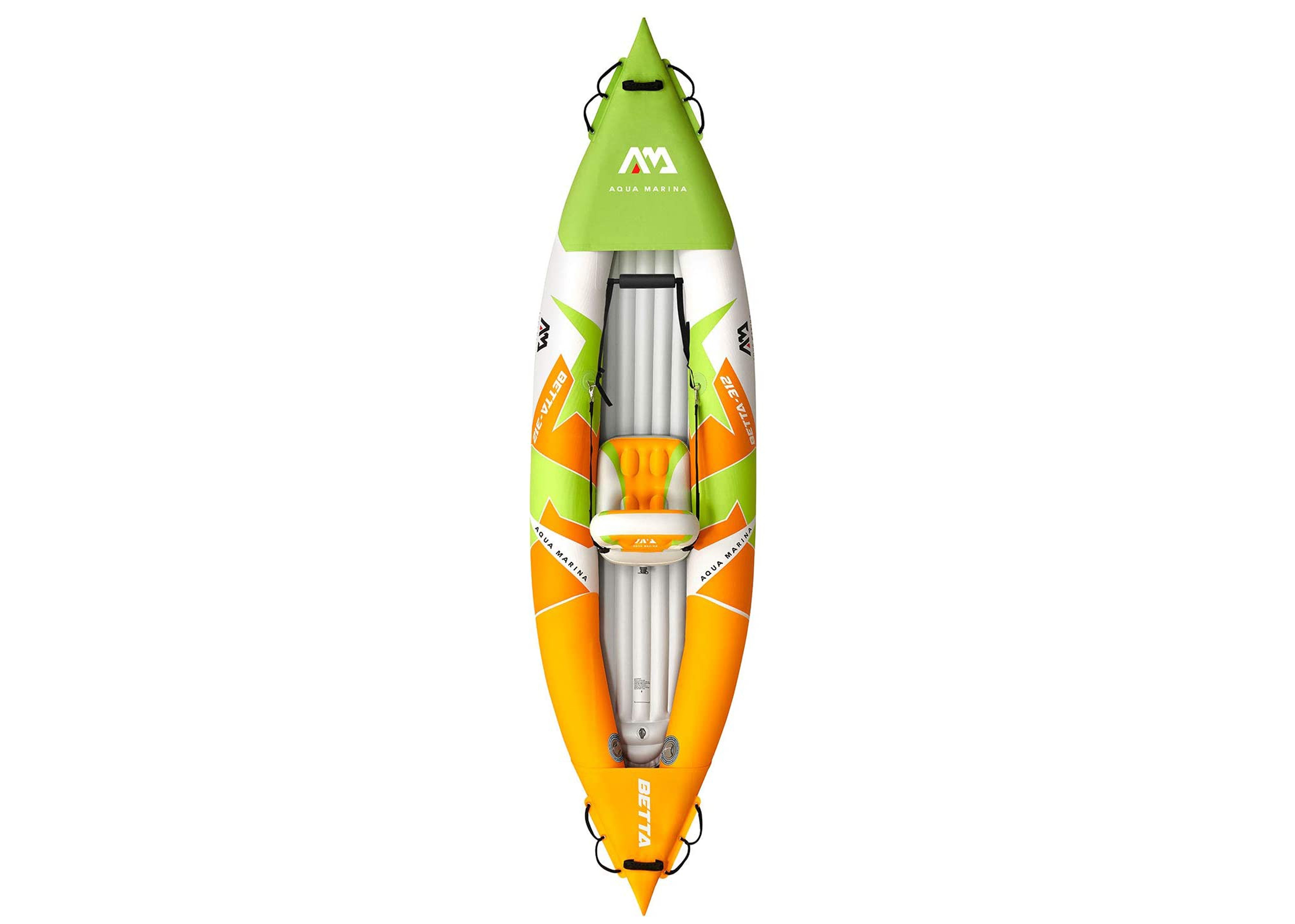 Kajak je namenjen za plovbo po jezerih in mirnih vodah. Ta napihljiv kajak je primeren za začetnike do srednje napredne kajakaše.Rekreativni napihljiv kajak Aqua Marina Betta je izdelan iz ojačanega večplastnega PVC materiala, ki je zelo mehansko odporen in enostaven za vzdrževanje.