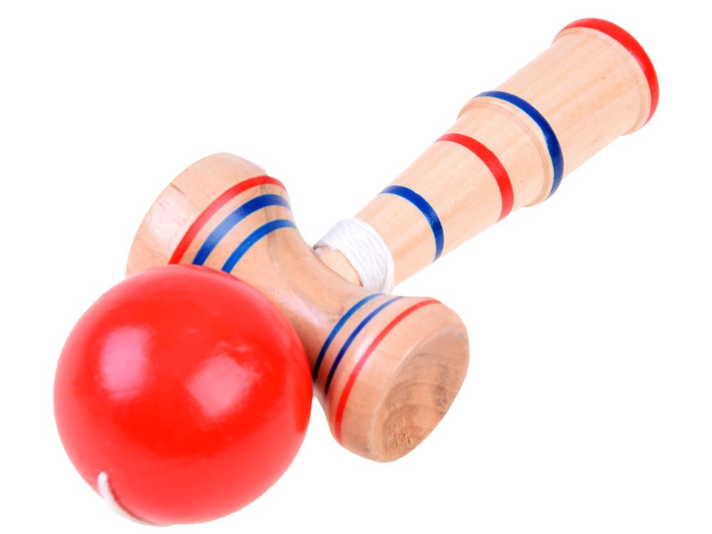 Kendama je preprosta igra, ki pomaga vaditi natančne gibe rok. Igrača je v celoti izdelana iz lesa. Sestavljen je iz lesene krogle z odprtino, ki je s pomočjo vrvice pritrjena na kladivo z votlinami. Igra je v tem, da odbijate leseno kroglico, tako da na koncu zadene palčko v kladivcu. Igrača ponuja veliko priložnosti za izvajanje različnih vrst trikov in žongliranja, kar spodbuja igro in vadi potrpežljivost. Izpustite žogo in jo poskusite ujeti na ročaj. Igrača za urjenje spretnosti vam bo zagotovila ure odlične zabave in vas hkrati naučila potrpežljivosti in vztrajnosti. Odlična zabava ne samo za otroke.