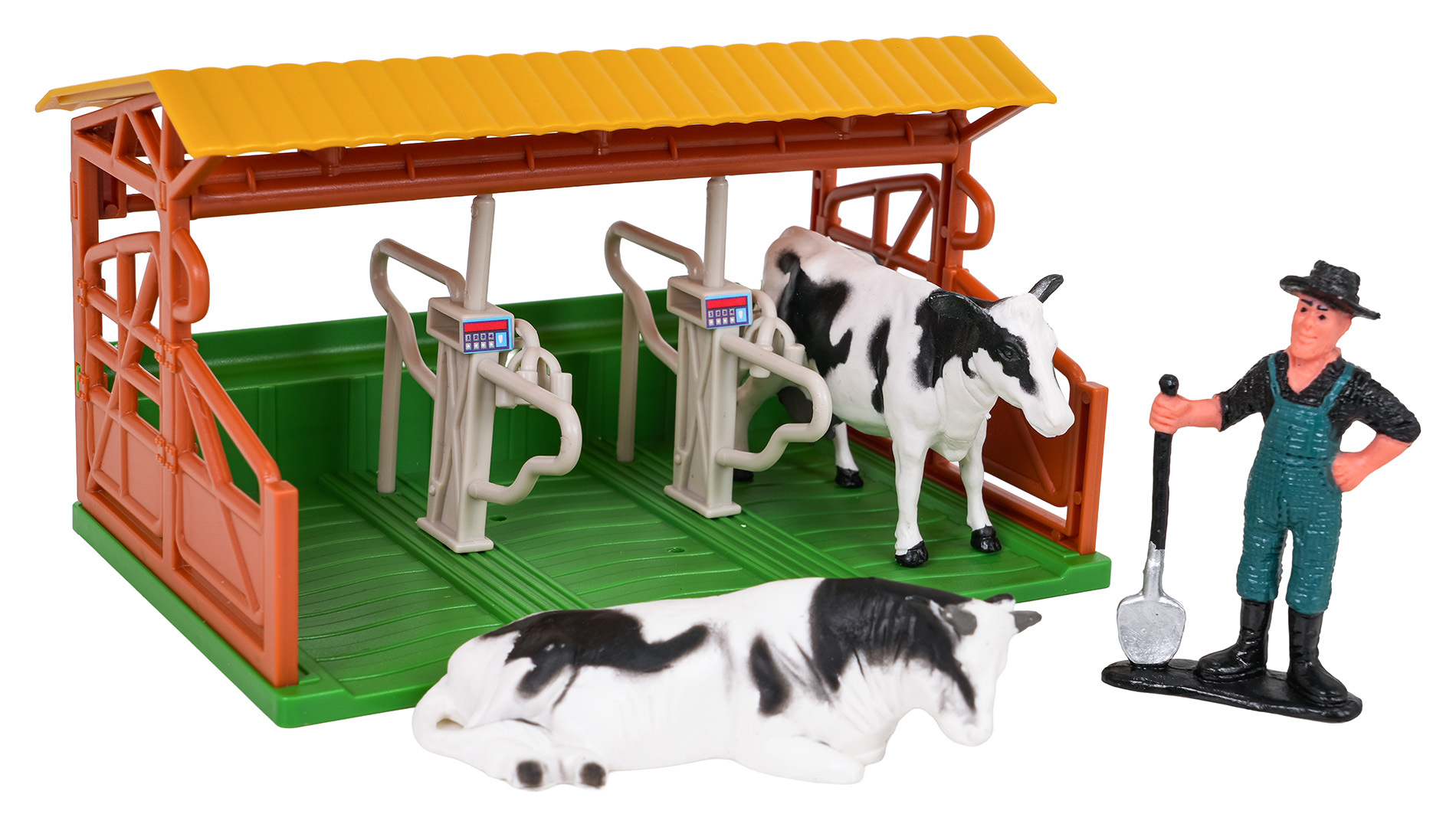 Set kmetija z interaktivnim traktorjem, cisternim vozom, ogrado in figuricami za otroke od treh let. Komplet je bil izdelan iz najkakovostnejše plastike v živih barvah. V kompletu se nahaja ograda za živino, 2 kravici, figura kmeta, drevo, cisterna in interaktivni traktor z zvočnimi in svetlobnimi učinki. Traktor oddaja zvoke vožnje, vzvratne vožnje, hupo (plošča z gumbi na strehi). Traktorski je napajan z baterijami tipa 3 x AG13 1,5 V (v paketu).