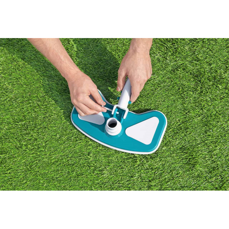 | - teleskopska palica z max. dolžina 2,79 m, - različni nastavki za pritrditev filtrirne črpalke, - sesalnik s ponovno uporabnim rezervoarjem za zbiranje bazenskih odpadkov, - mreža za lovljenje nečistoč iz bazena, - vrtna cev dolžine 7,5 m in širine 3,2 m. | |
