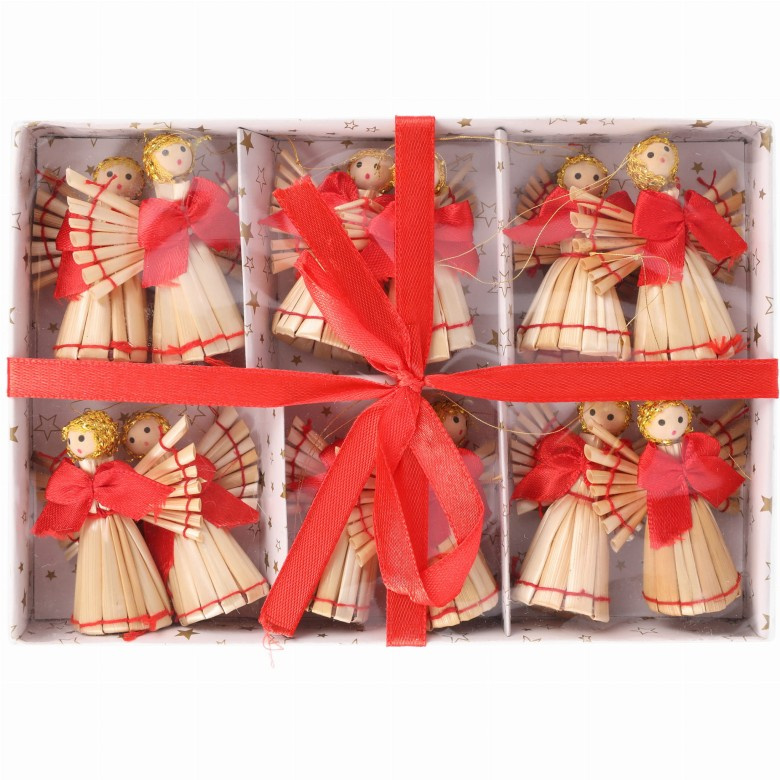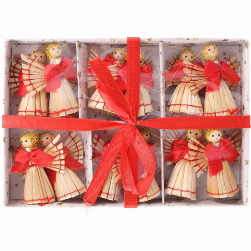 STRAW BOMBIES ANGELS COMPONENT - 12 kosov. Višina: 5,5 cm Širina: 4,5 cm Komplet lepih, izvirnih okraskov iz slame. Popolna božična dekoracija za na drevo in v trstičje. Visoka kakovost daje tej dekoraciji edinstven videz. So lepe in zagotovo izvirne!