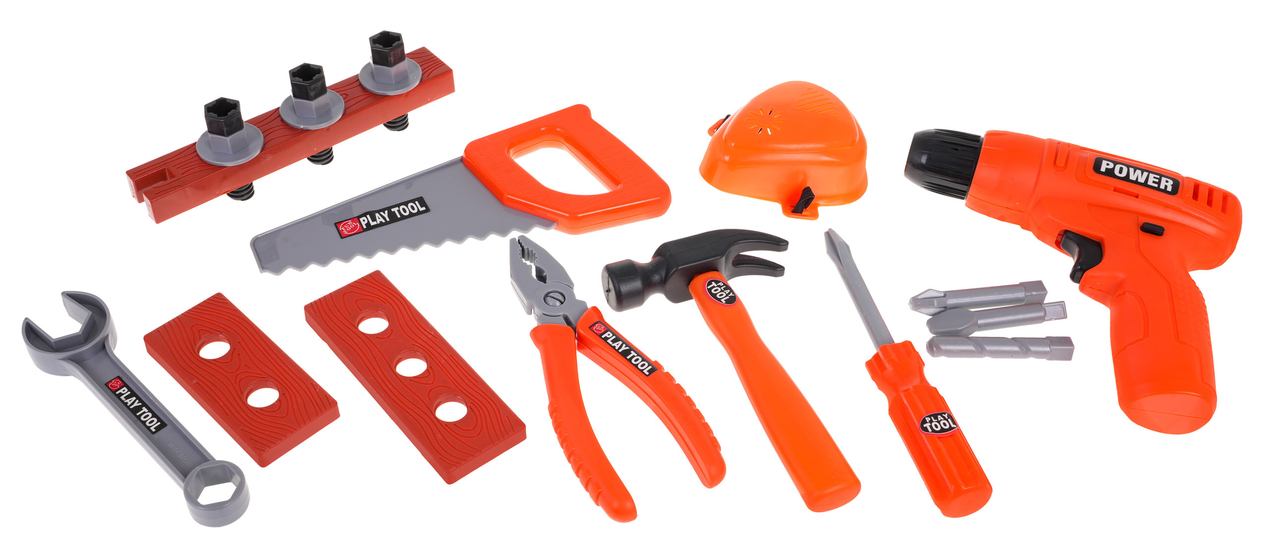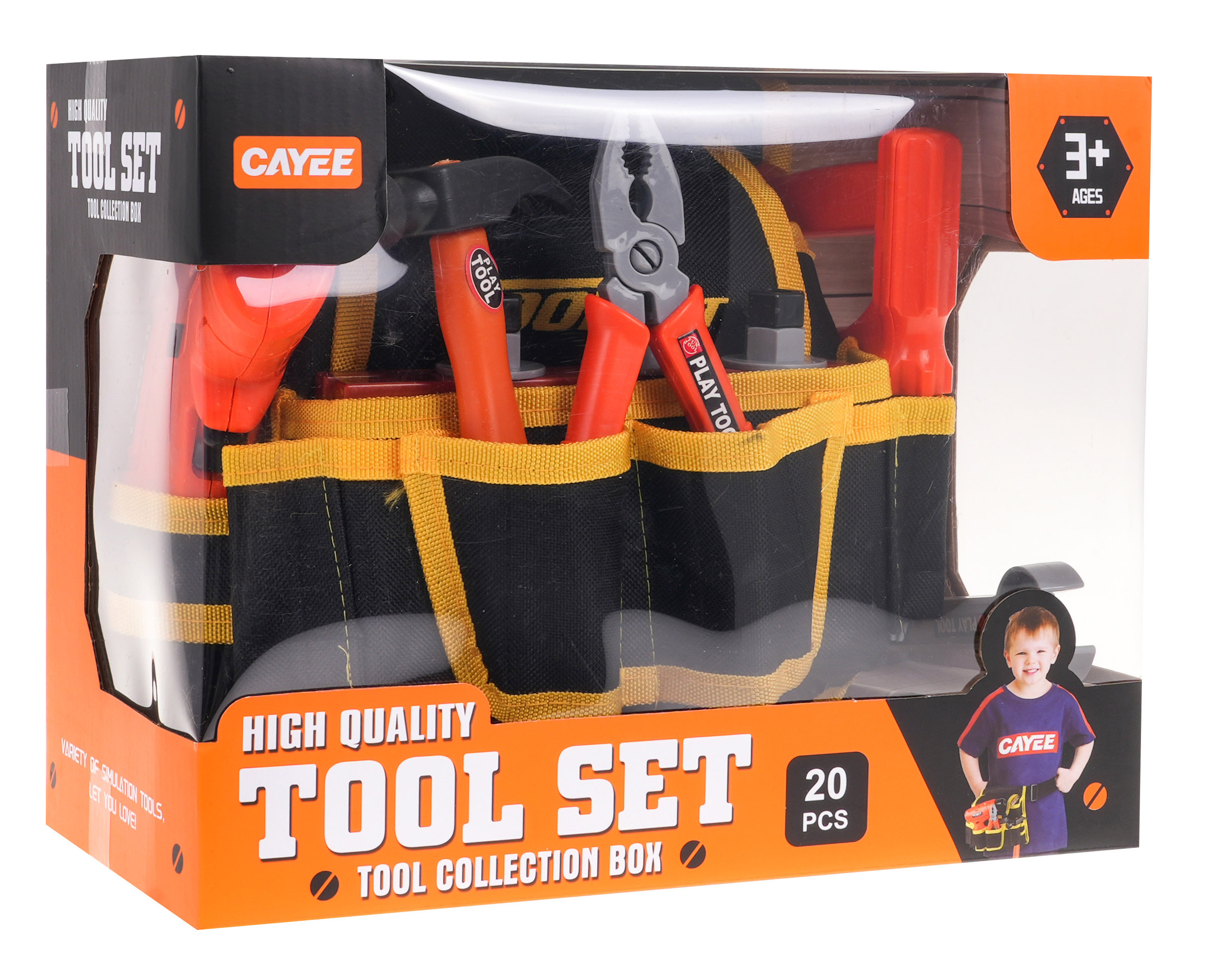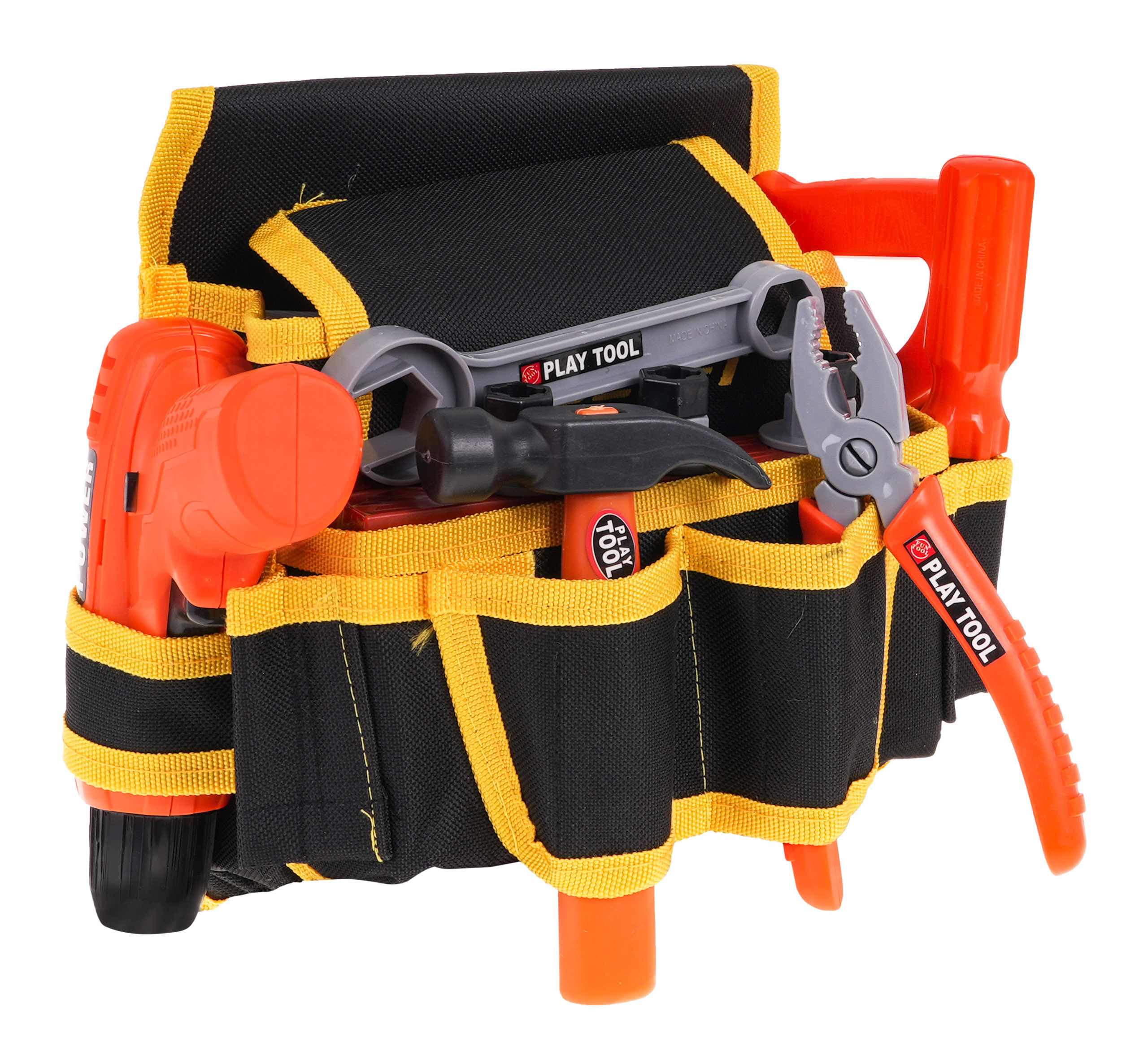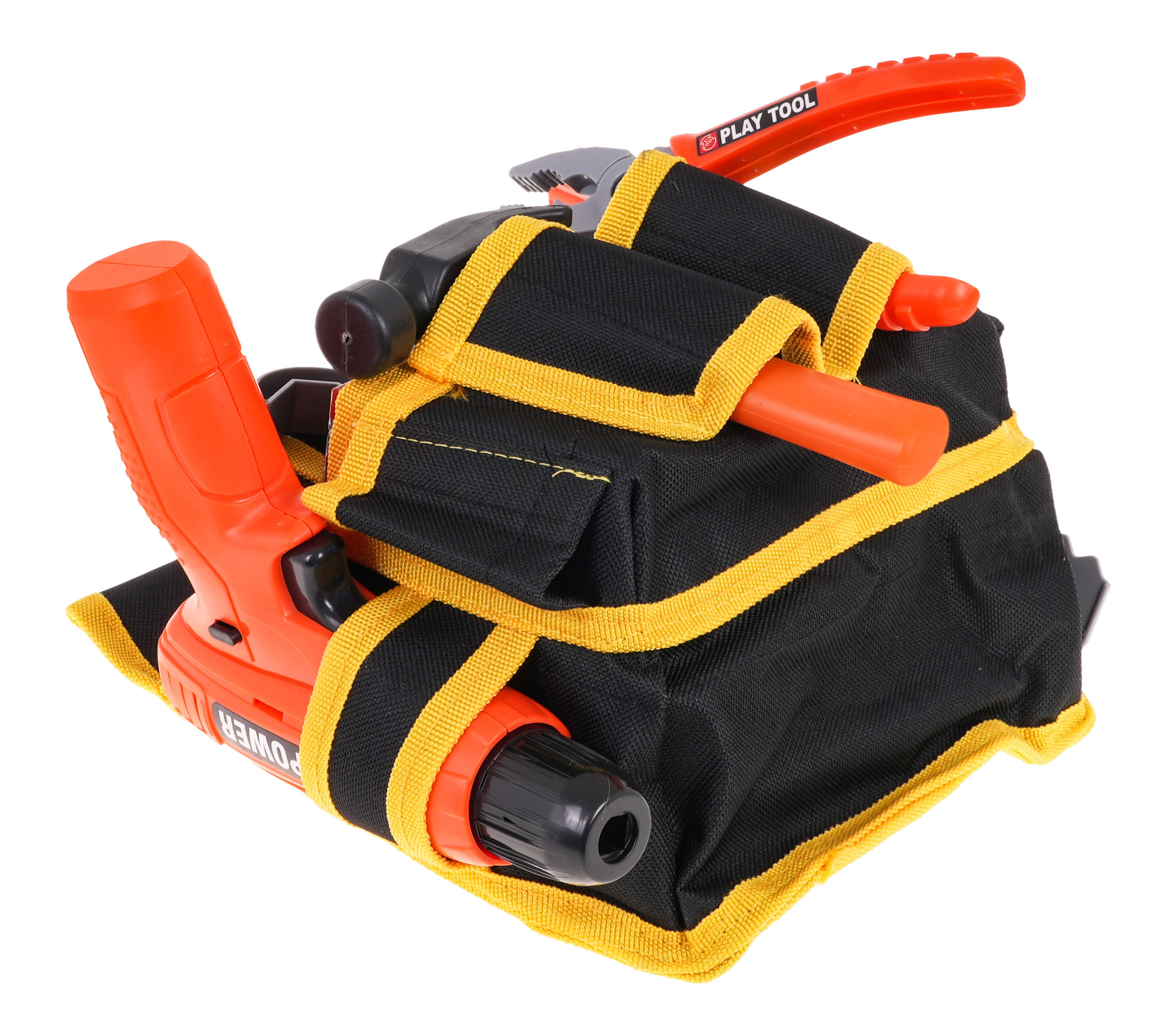 Odlično izdelan DIY trak z dodatki je primeren za otroke od 3 let. Pas - večnamenska torba, ki na videz zavajajoče spominja na pravi pas. Ima glavni predal na ježka in vrsto sprednjih in stranskih predalov. Torba je opremljena z udobnim nastavljivim trakom z zaponko, ki ga je mogoče obesiti čez boke. Set vsebuje orodje za domače mojstre, kot so vrtalnik/vijačnik, zaščitna maska, žaga, izvijač, kladivo, matice, izvijač, vrtalnik in plastični sveder z luknjami za vijake. Izvijač napajajo 2 bateriji AA 1,5 V, baterije niso priložene.