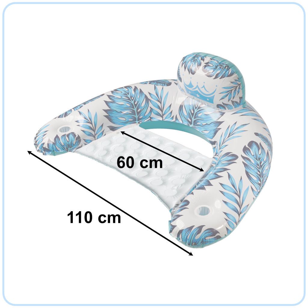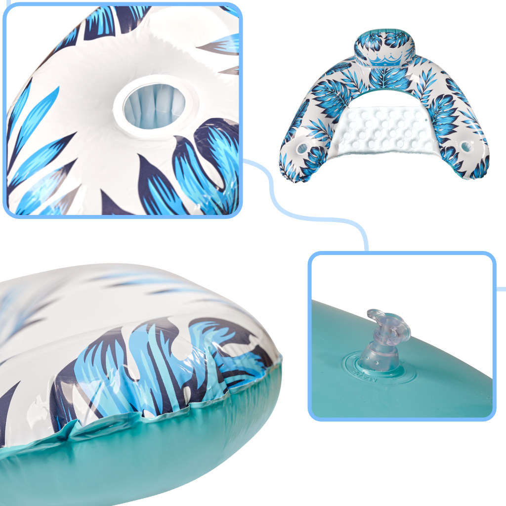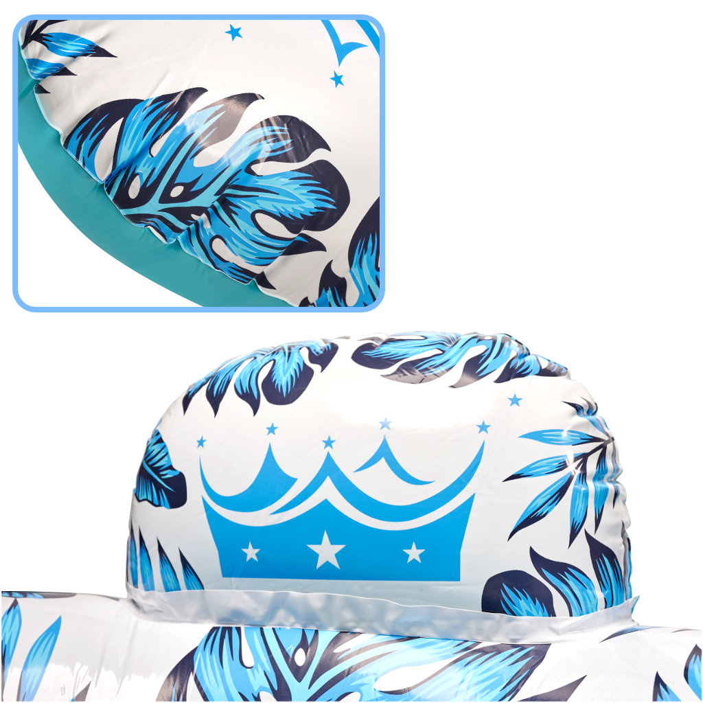 Poleg očitnega udobja, ki ga izdelek nudi, napihljiv stol ponuja tudi vizualno izkušnjo - zanimiv in barvit dizajn z motivom palme in listov monstere bo zagotovo pritegnil marsikoga!