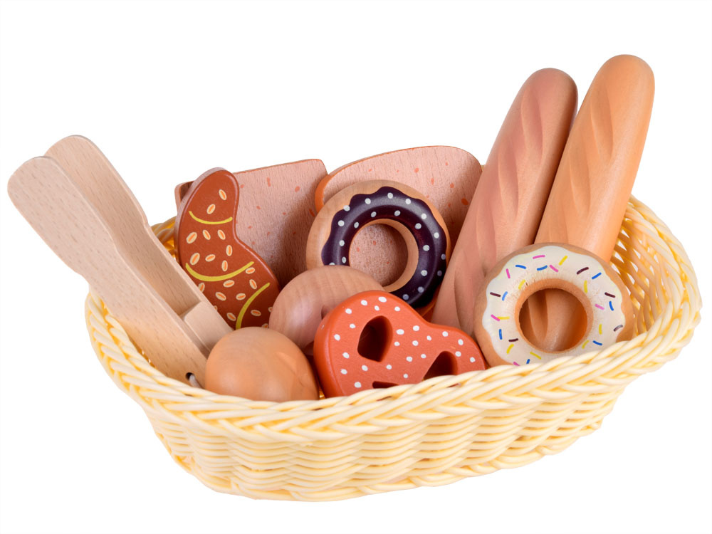 Košara za kruh je lesen izdelek, ki omogoča vsakemu otroku pripraviti okusen zajtrk za punčke, medvedke in druge lačne otroke.